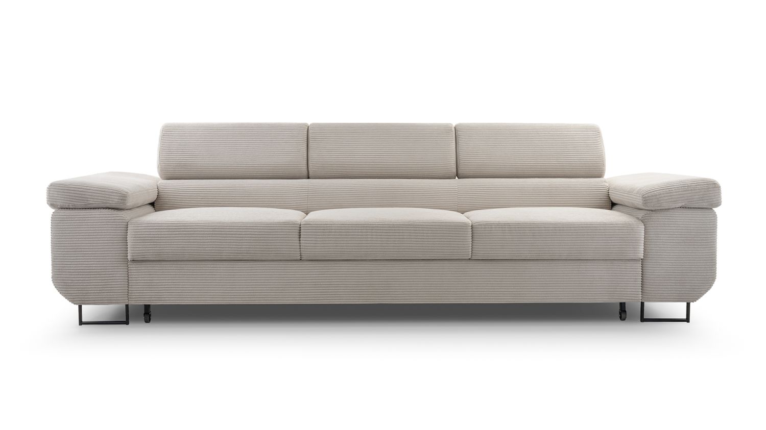 Szukasz eleganckiej i funkcjonalnej kanapy rozkładanej, która zapewni wysoki komfort i dopełni aranżację wnętrza? Model BELLUNOP w kolorze beżowym to doskonały wybór dla osób ceniących nowoczesny styl, wygodę i praktyczne rozwiązania. Jego prosta, geometryczna forma z szerokimi podłokietnikami i regulowanymi zagłówkami nadaje wnętrzu elegancji i ponadczasowego charakteru.Kanapa wyposażona została w automat wspomagający funkcję spania, który umożliwia szybkie i bezwysiłkowe rozkładanie. Po rozłożeniu tworzy się wygodna, pełnowymiarowa powierzchnia do snu – idealna do codziennego użytkowania lub okazjonalnego noclegu. Dodatkowym udogodnieniem jest pojemnik na pościel, który pozwala na praktyczne przechowywanie koców, kołder i poduszek.Siedzisko i oparcie wypełnione są wysokiej jakości pianką elastyczną, zapewniającą komfort oraz odporność na odkształcenia. Regulowane zagłówki umożliwiają indywidualne dopasowanie pozycji do użytkownika, a szerokie podłokietniki gwarantują wygodne oparcie i podkreślają solidną konstrukcję mebla.Tył kanapy został tapicerowany, dzięki czemu można ją ustawić w dowolnym miejscu – również na środku pomieszczenia. Metalowe nóżki dodają całości lekkości i nowoczesnego charakteru, jednocześnie zapewniając stabilność.Model BELLUNOP beżowy to połączenie wysokiej jakości wykonania, funkcjonalności i eleganckiego wzornictwa – idealny wybór do stylowego salonu lub przestrzeni wypoczynkowej.