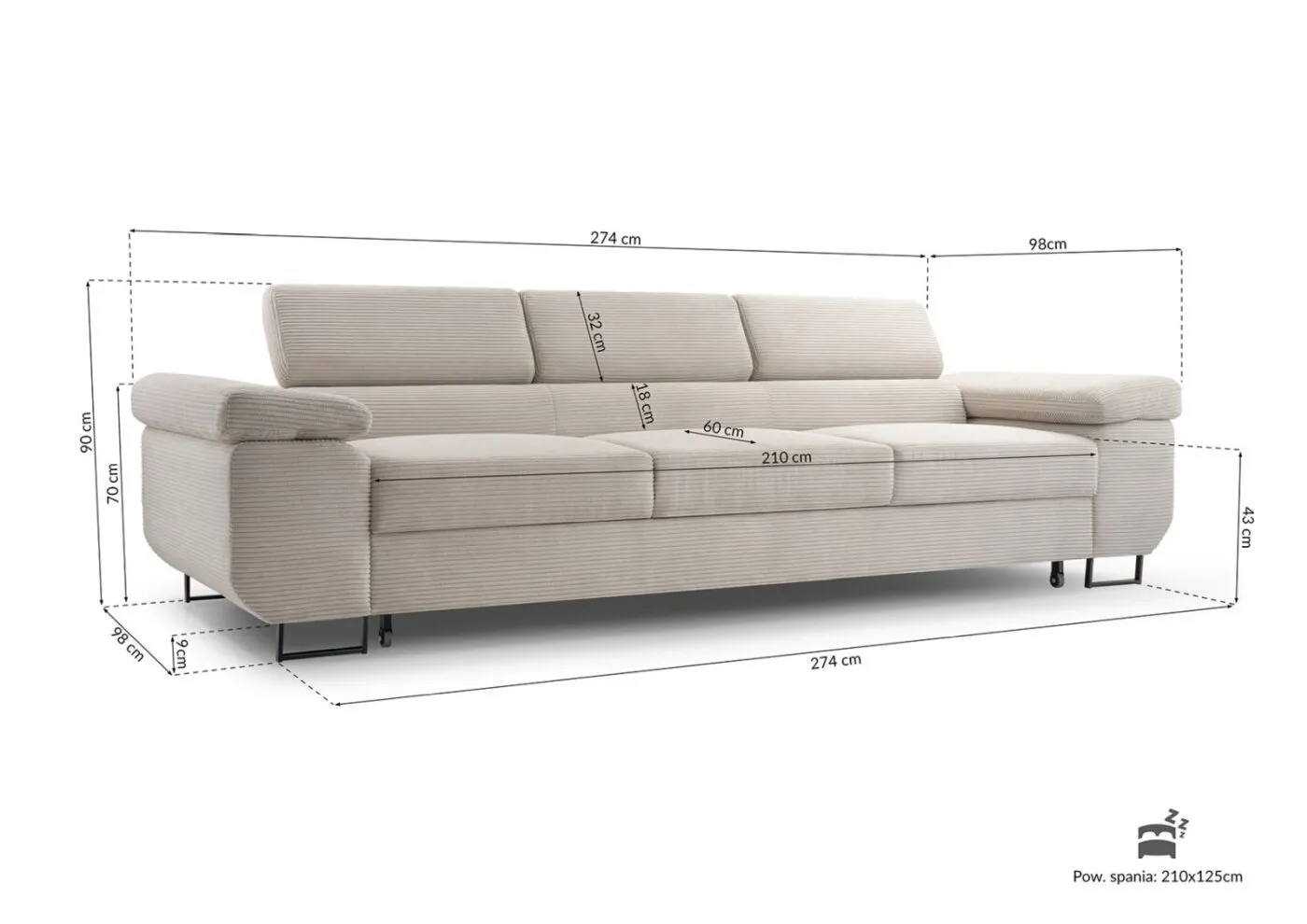 Wymiary98 × 274 × 90 cm