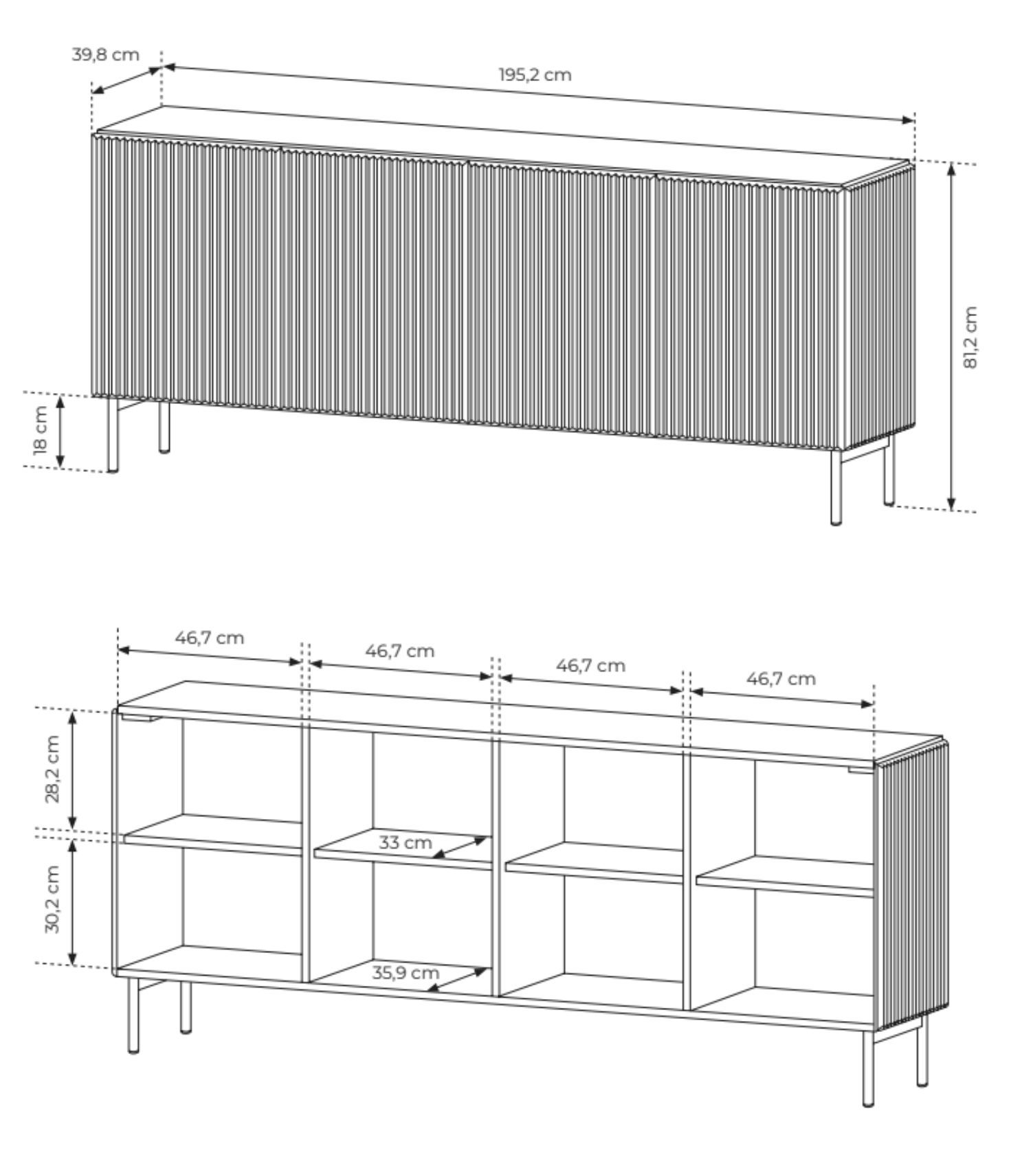 Komoda czterodrzwiowa LARTE 195 cm ryflowany front czarny