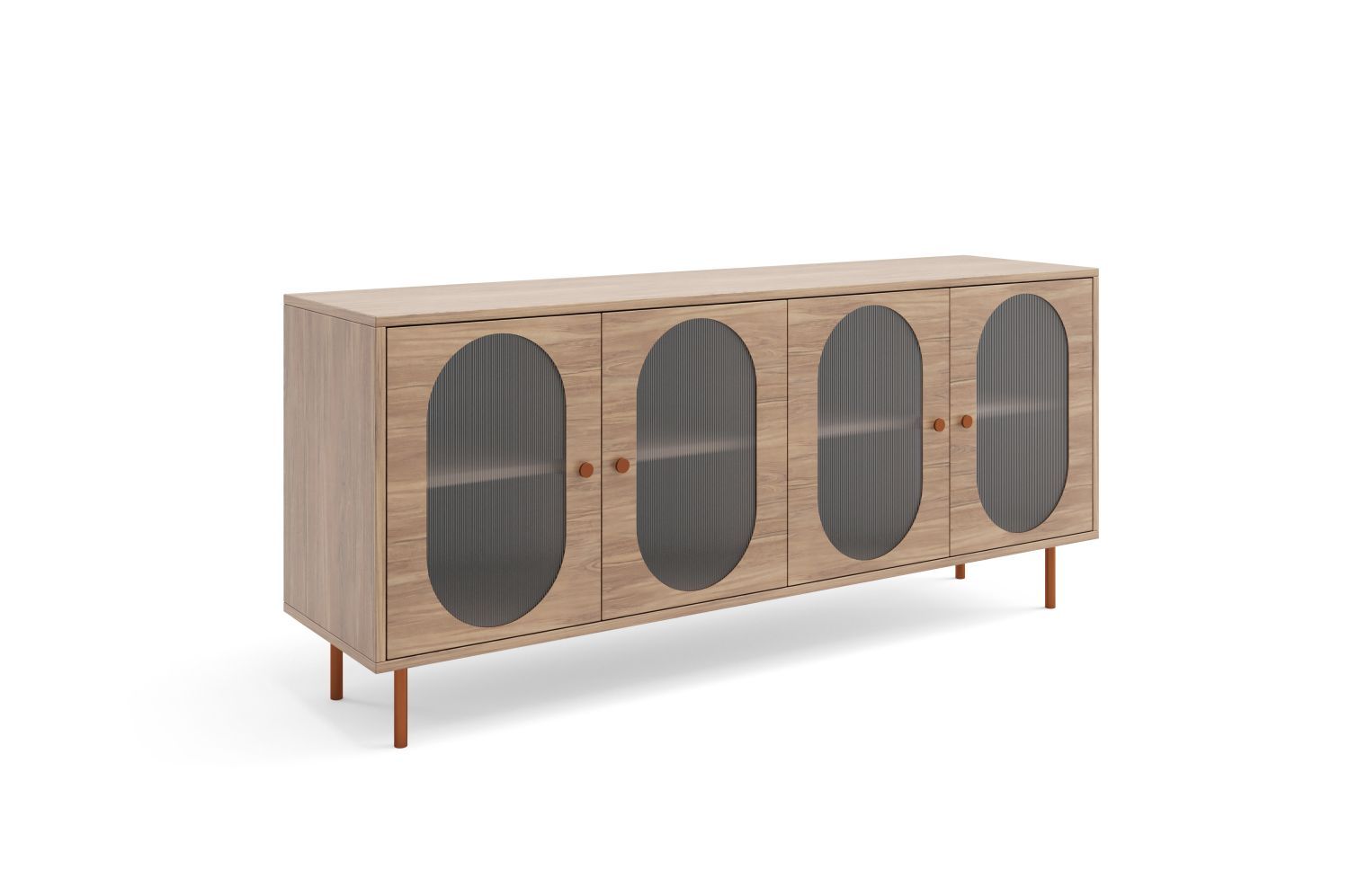 Komoda czterodrzwiowa VOLT 164 cm przeszklona, metalowe nogi, orzech włoski