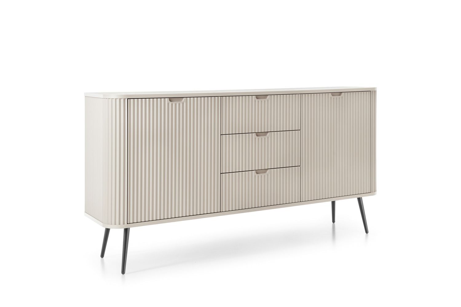 Komoda dwudrzwiowa ALURE z trzema szufladami 168 cm ryflowana kaszmir