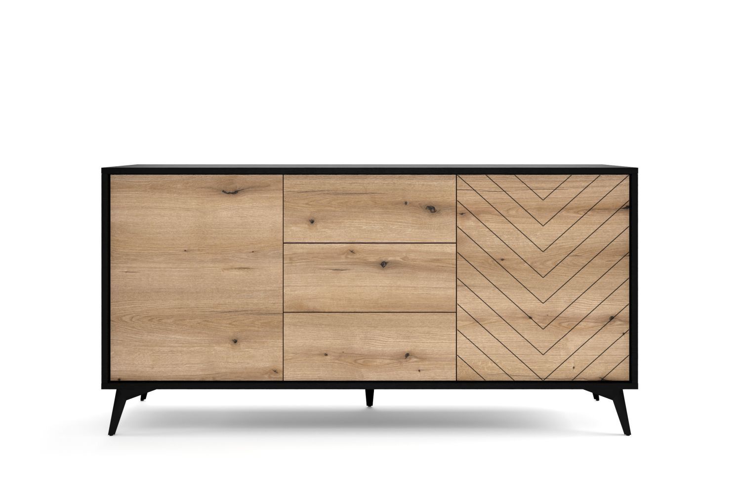 Komoda dwudrzwiowa ARTE z trzema szufladami 154 cm czarny jodełka