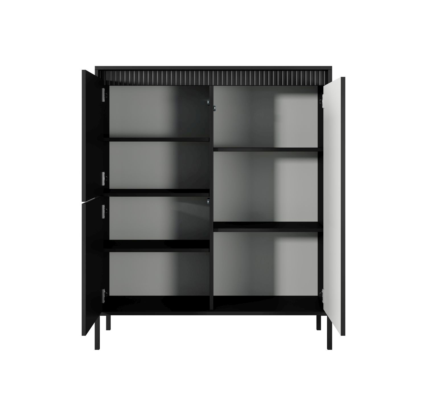 Komoda trzydrzwiowa CALMA wysoka 103 cm ryflowany front czarny Komoda trzydrzwiowa CALMA wysoka 103 cm ryflowany front czarny