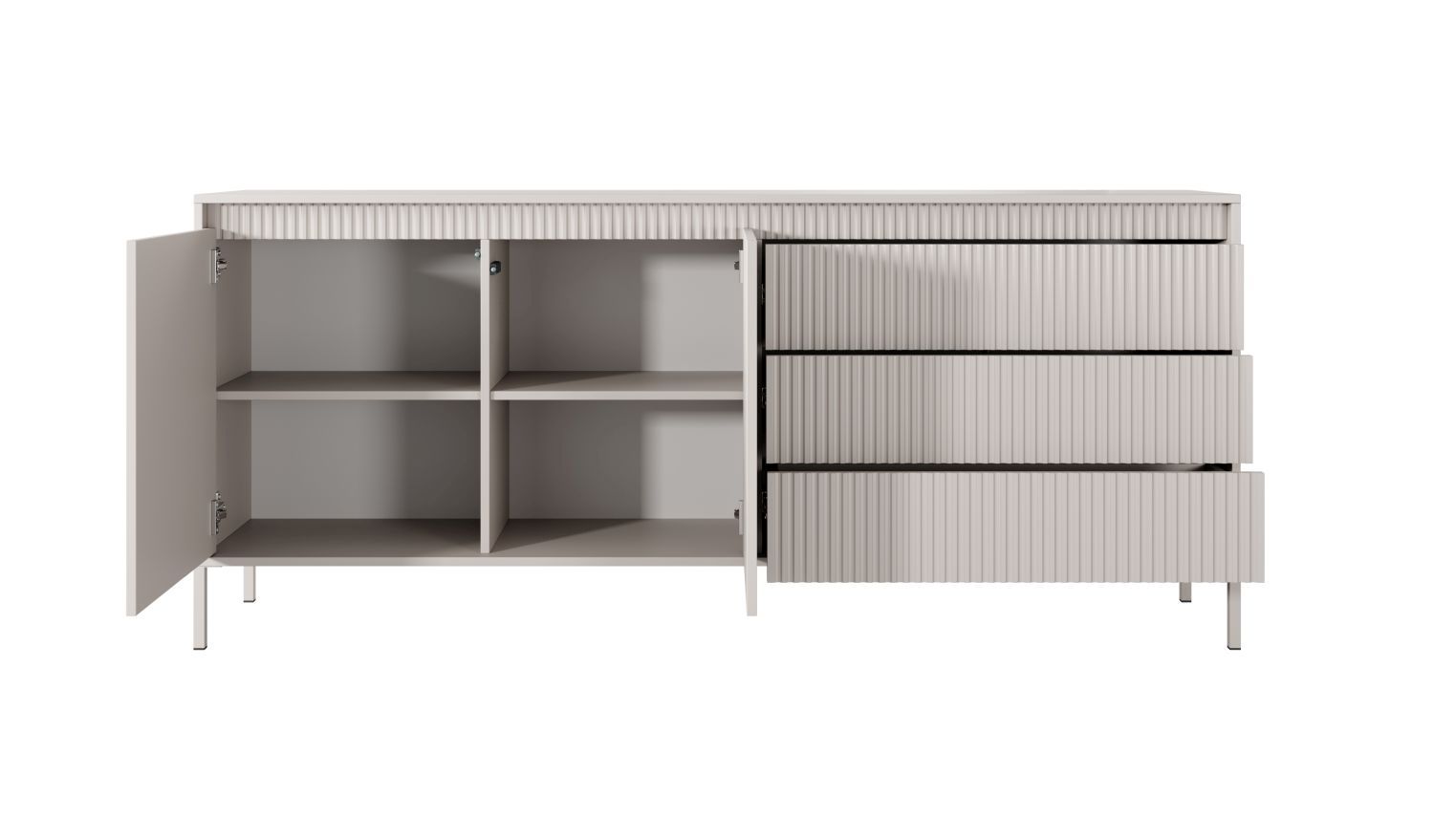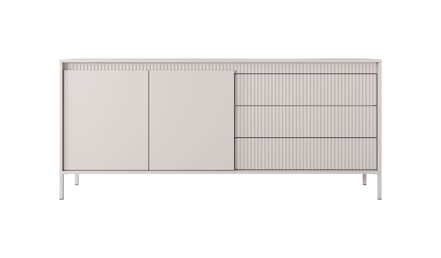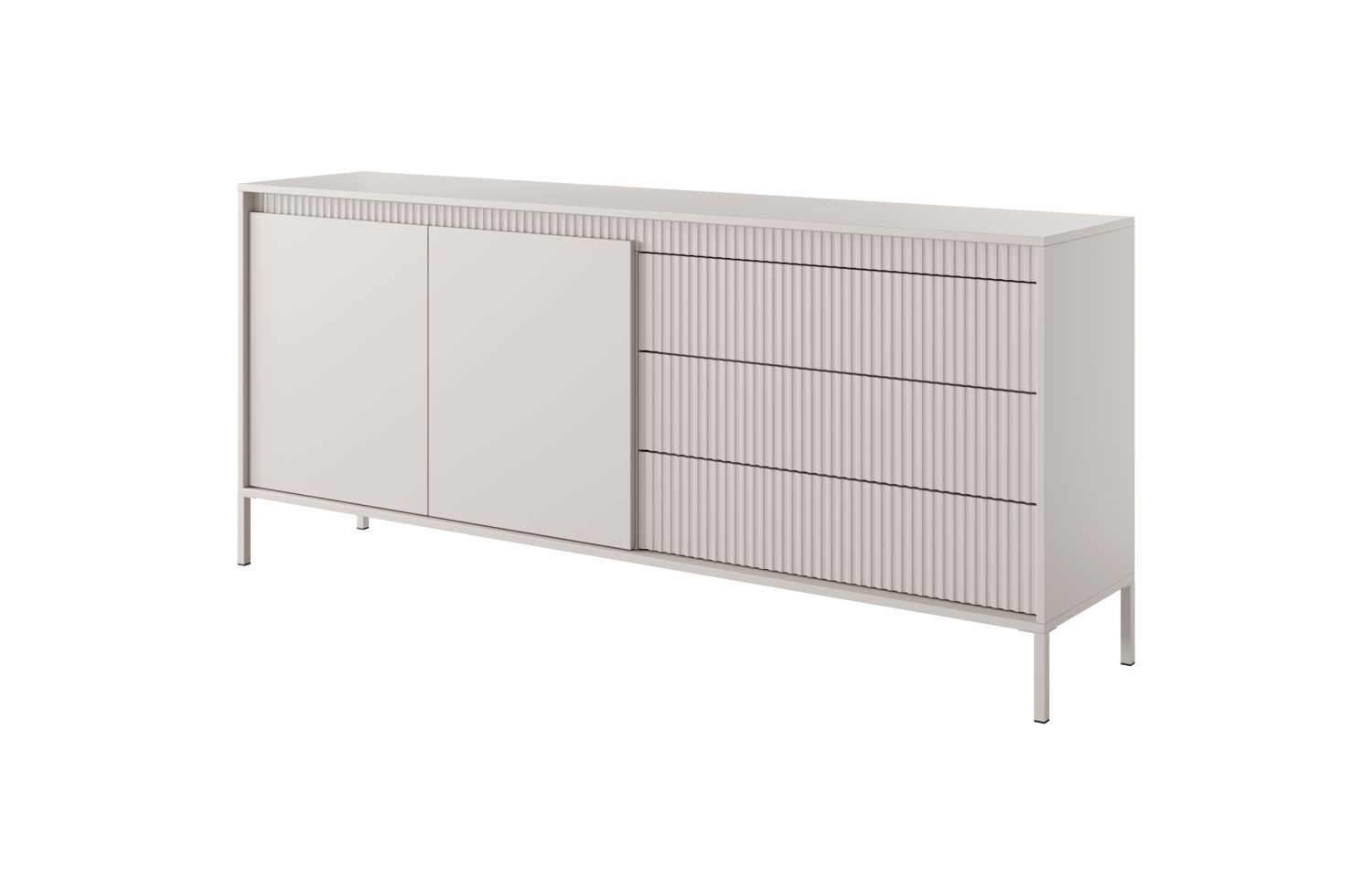 Komoda dwudrzwiowa CALMA z trzema szufladami 187 cm ryflowany front beżowy