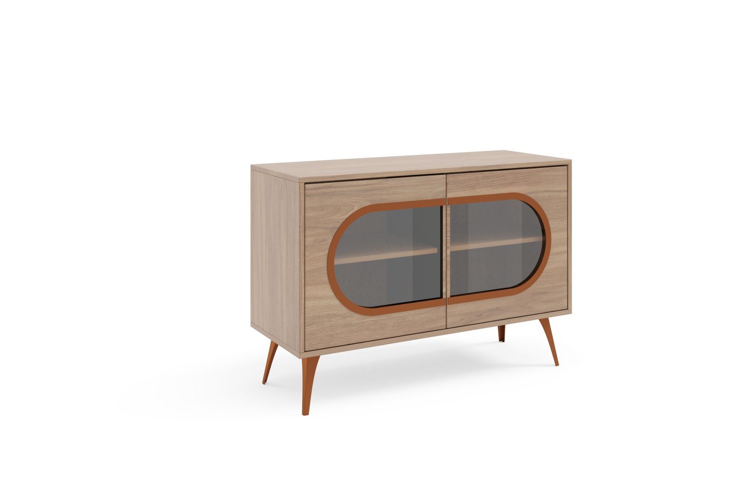 Komoda dwudrzwiowa CAZZU 110 cm z przydymionym szkłem i złotymi detalami, orzech włoski