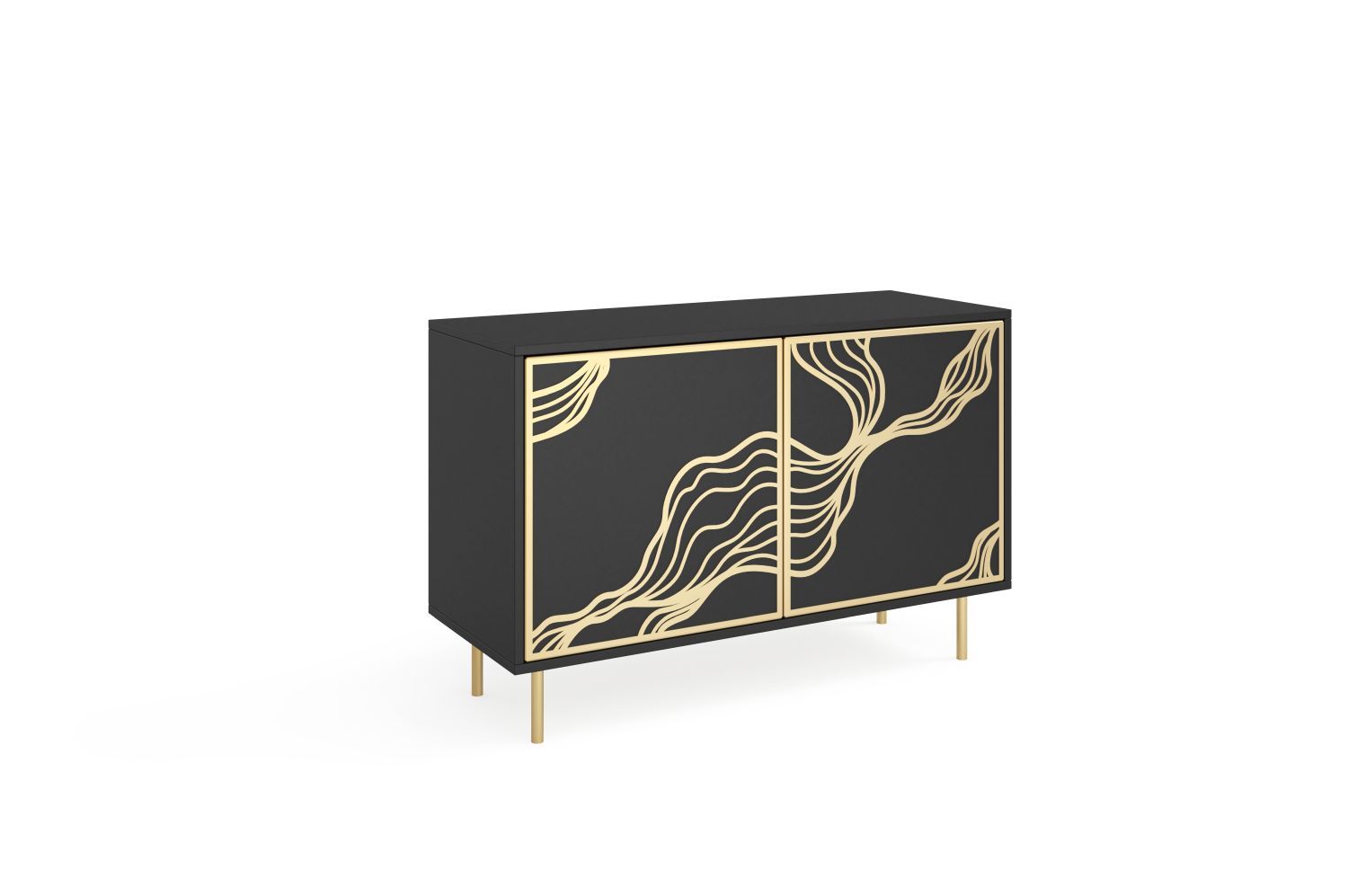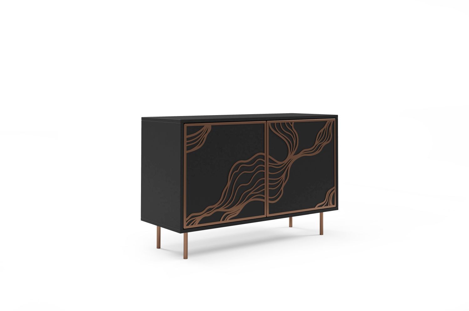 Komoda dwudrzwiowa MALF 110 cm z frontami zdobionymi wzorem i miedzianymi akcentami, czarny