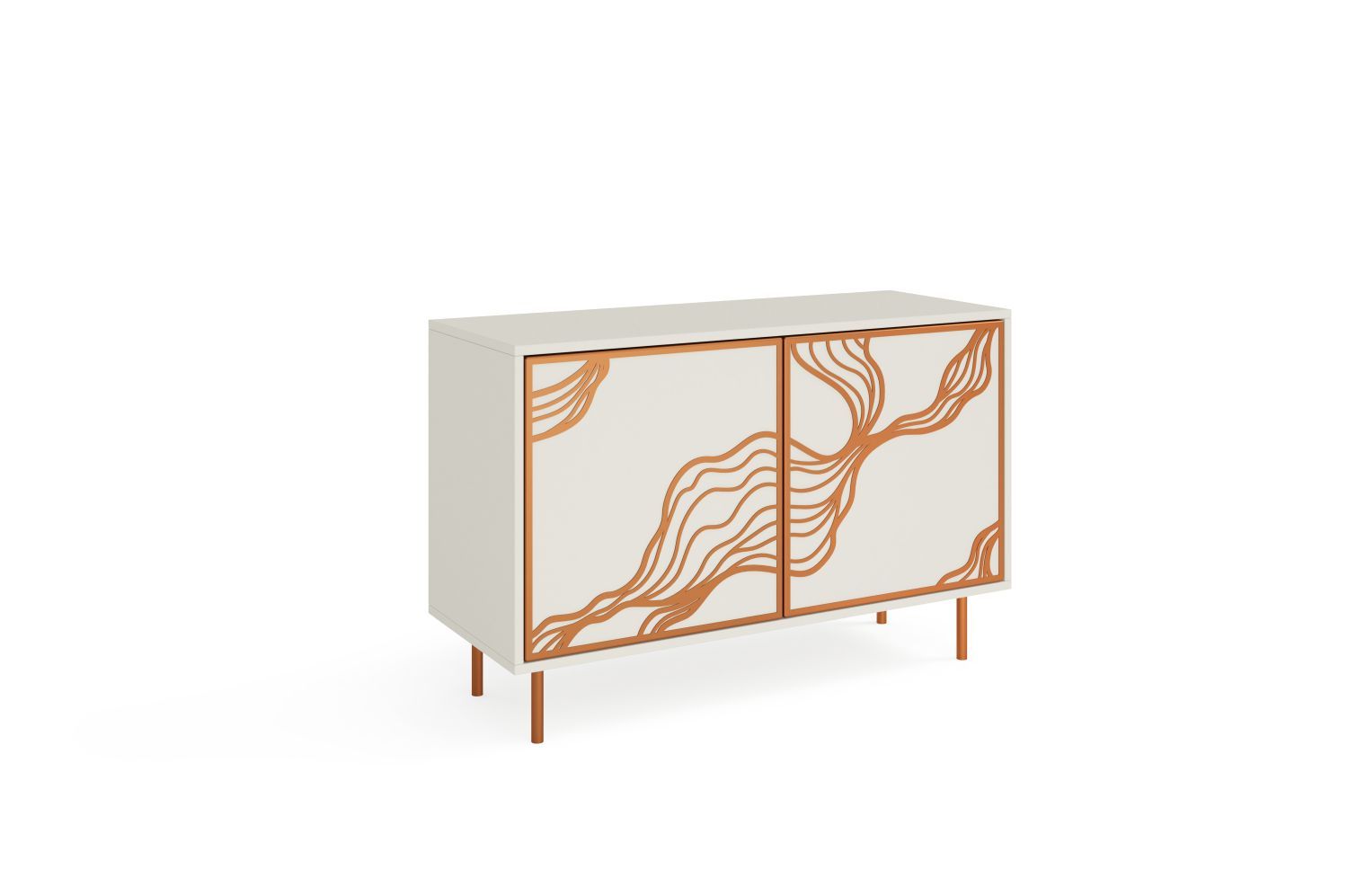 Komoda dwudrzwiowa MALF 110 cm z frontami zdobionymi wzorem i miedzianymi akcentami, kaszmir