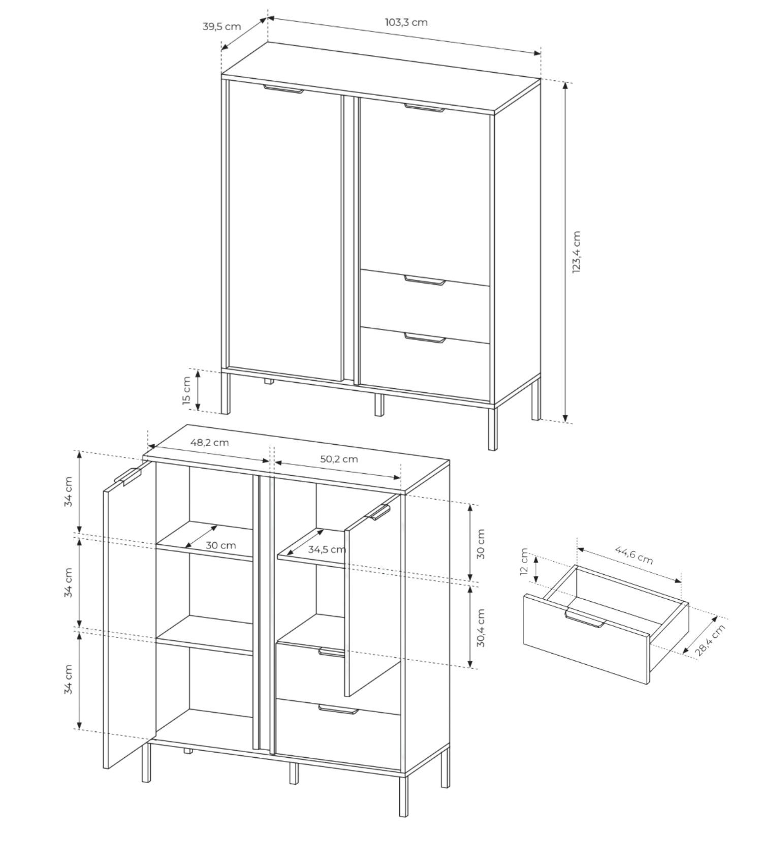 Komoda dwudrzwiowa MARI wysoka z dwiema szufladami 103 cm antracyt
