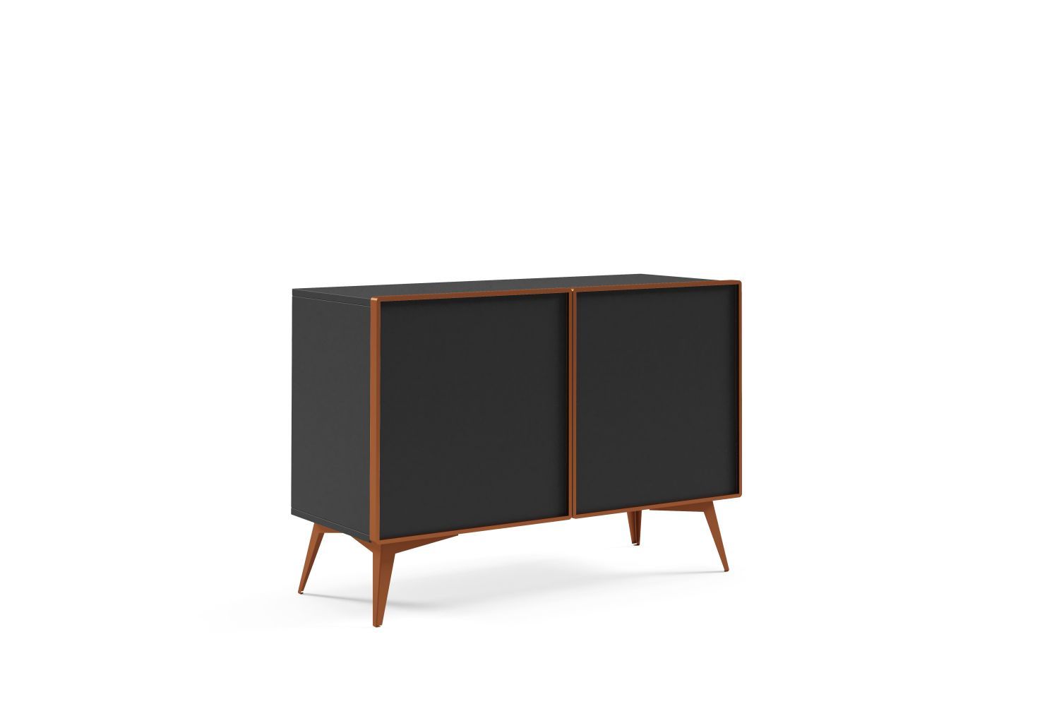 Komoda dwudrzwiowa MEDU 110 cm z drewnianymi frontami i metalowymi nogami, czarny Komoda dwudrzwiowa MEDU 110 cm z drewnianymi frontami i metalowymi nogami, czarny