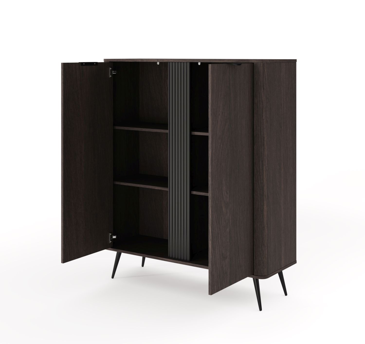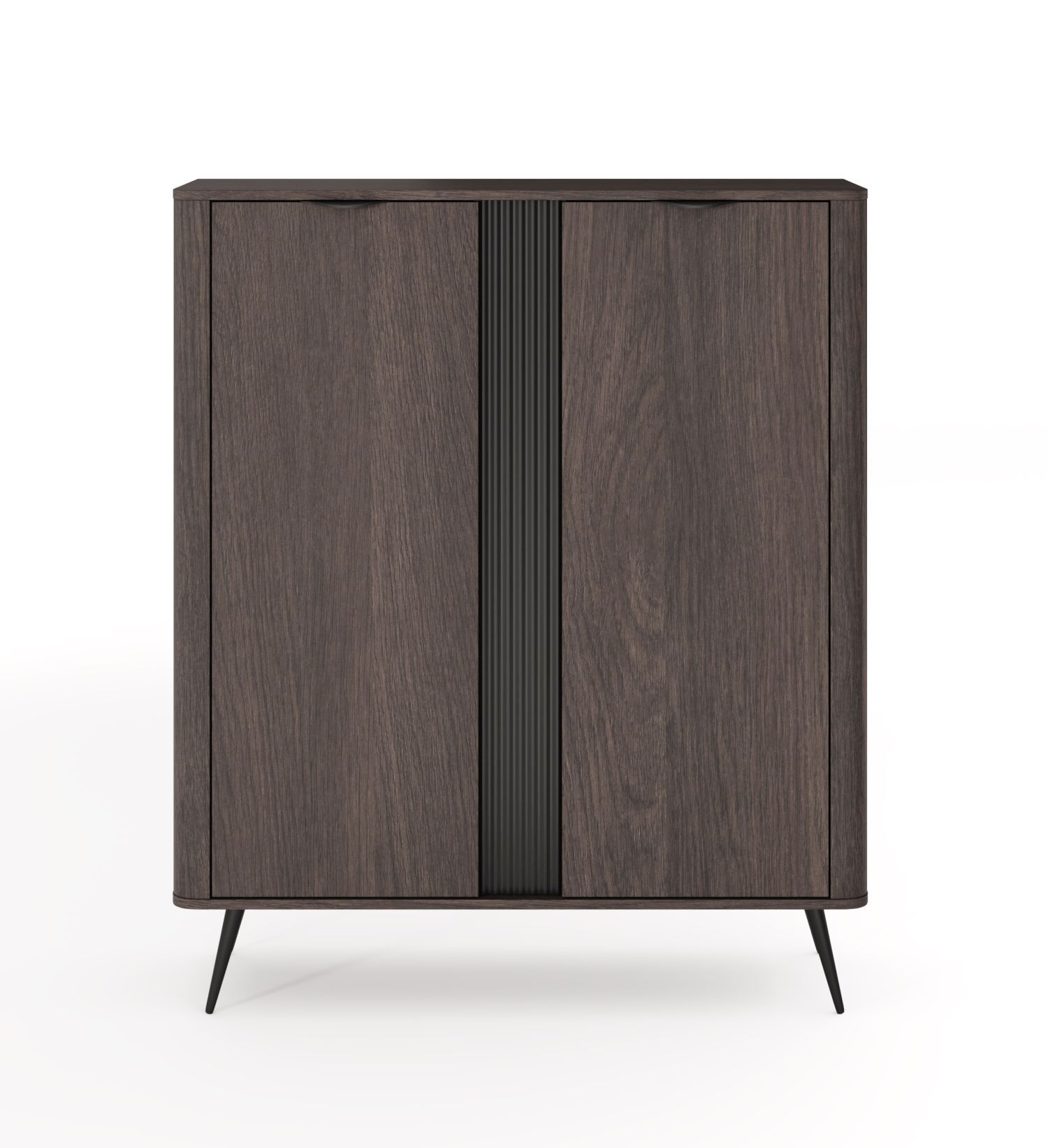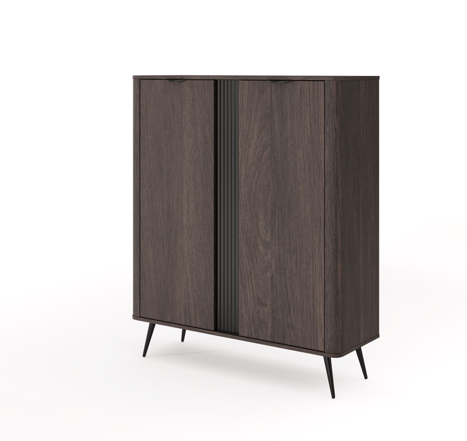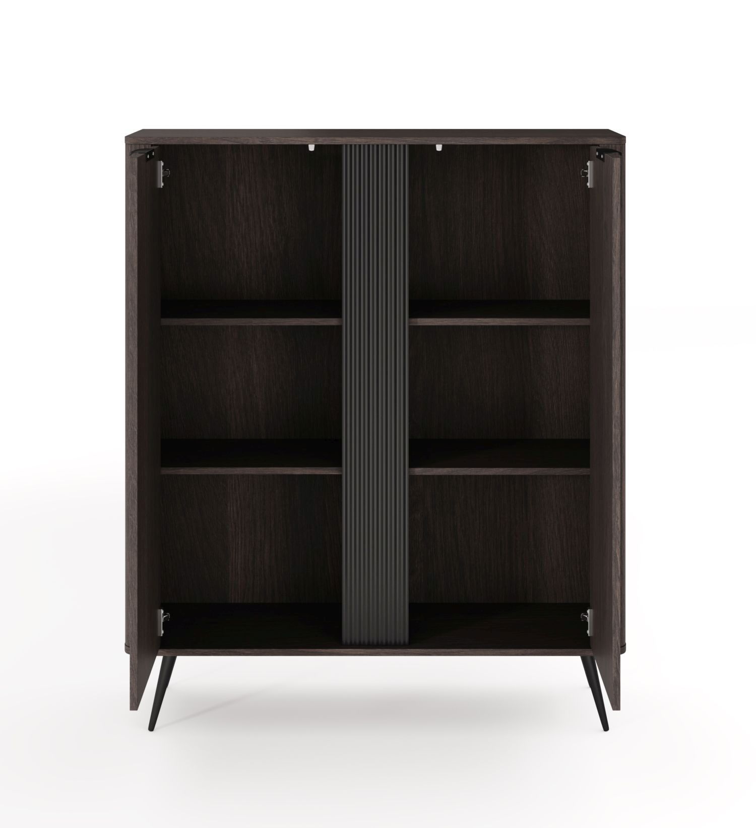 Komoda dwudrzwiowa NUBE wysoka 113 cm ryflowany akcent dąb dunin, czarny