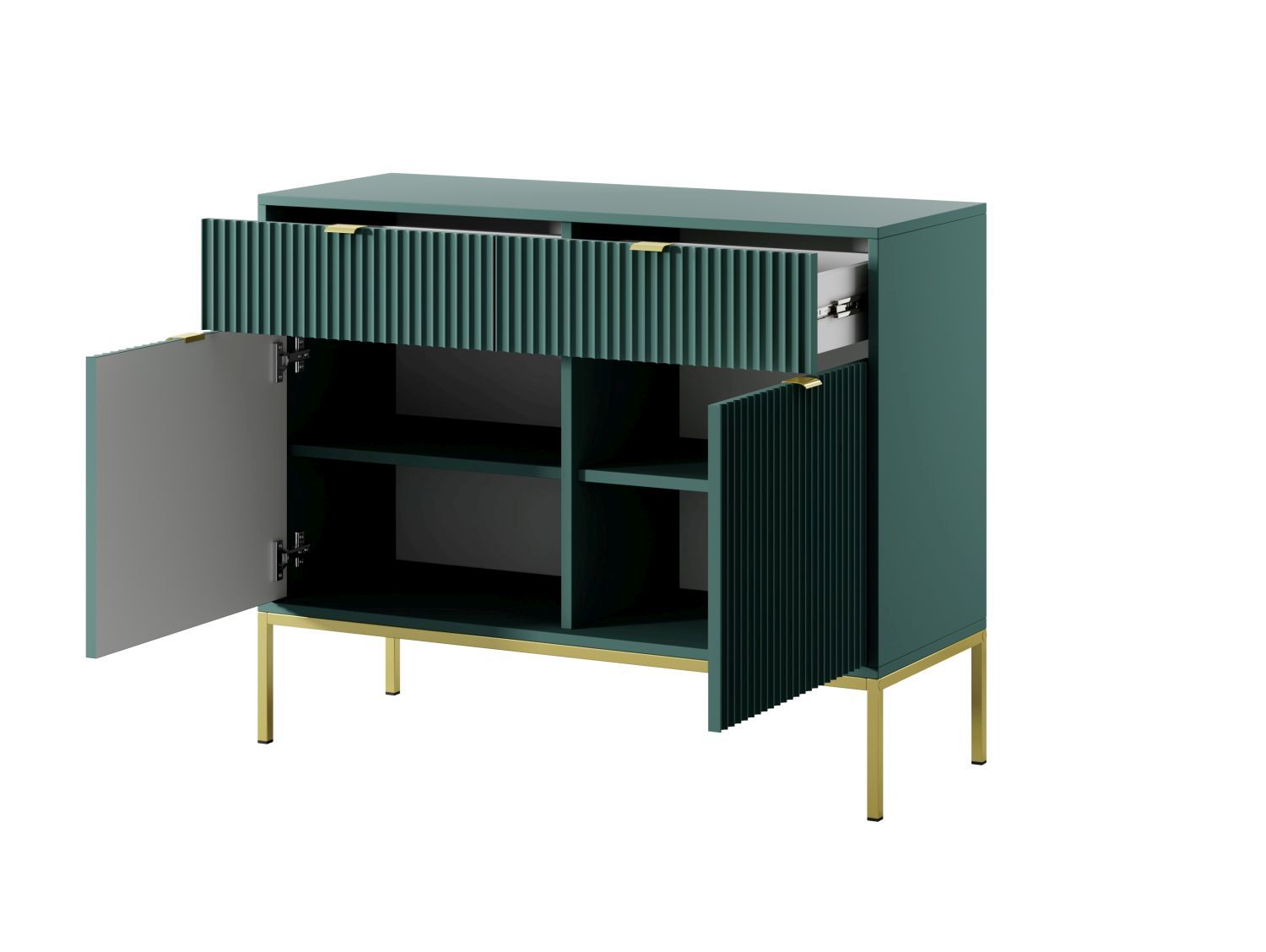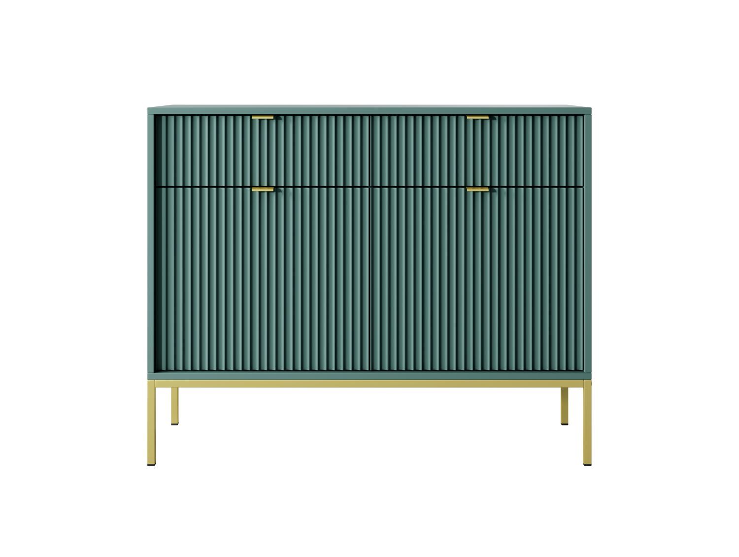 Komoda dwudrzwiowa ORT z dwiema szufladami 104 cm ryflowany front zielony Komoda dwudrzwiowa ORT z dwiema szufladami 104 cm ryflowany front zielony