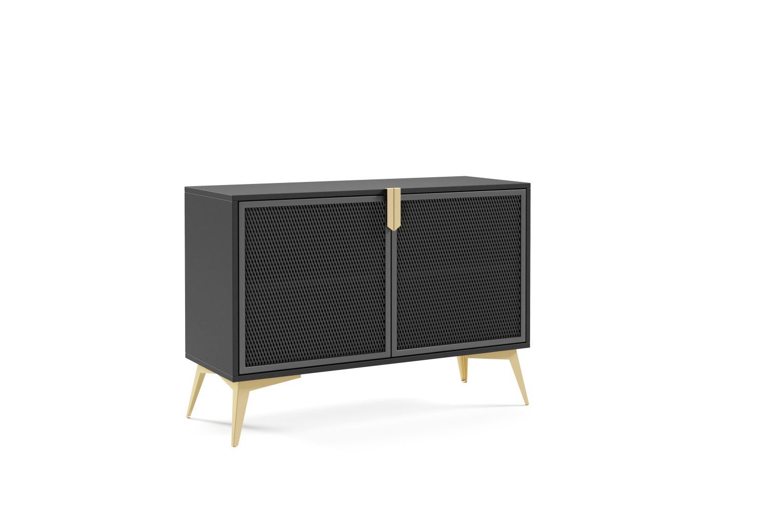 Komoda dwudrzwiowa RAVI 120 cm front ze stalowej siatki i złotymi detalami, czarny