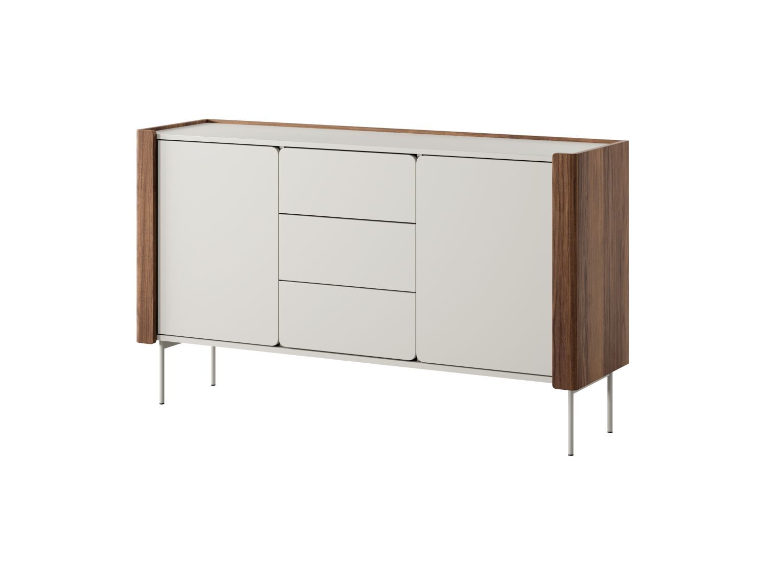 Komoda dwudrzwiowa RIRI z trzema szufladami 141 cm orzech warmia/kaszmir