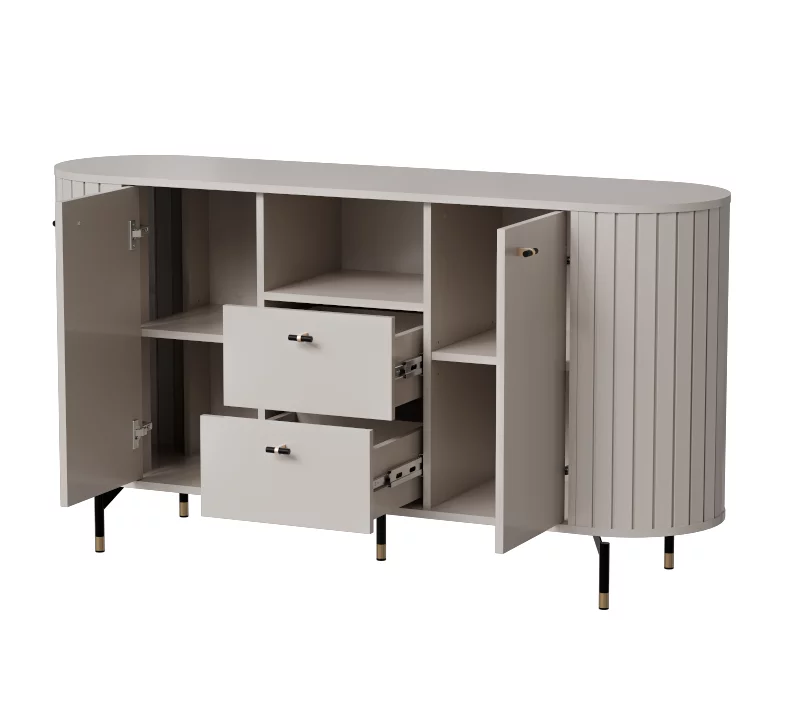 Komoda dwudrzwiowa VORIS B 150 cm z dwiema szufladami zaokrąglone boki kaszmir