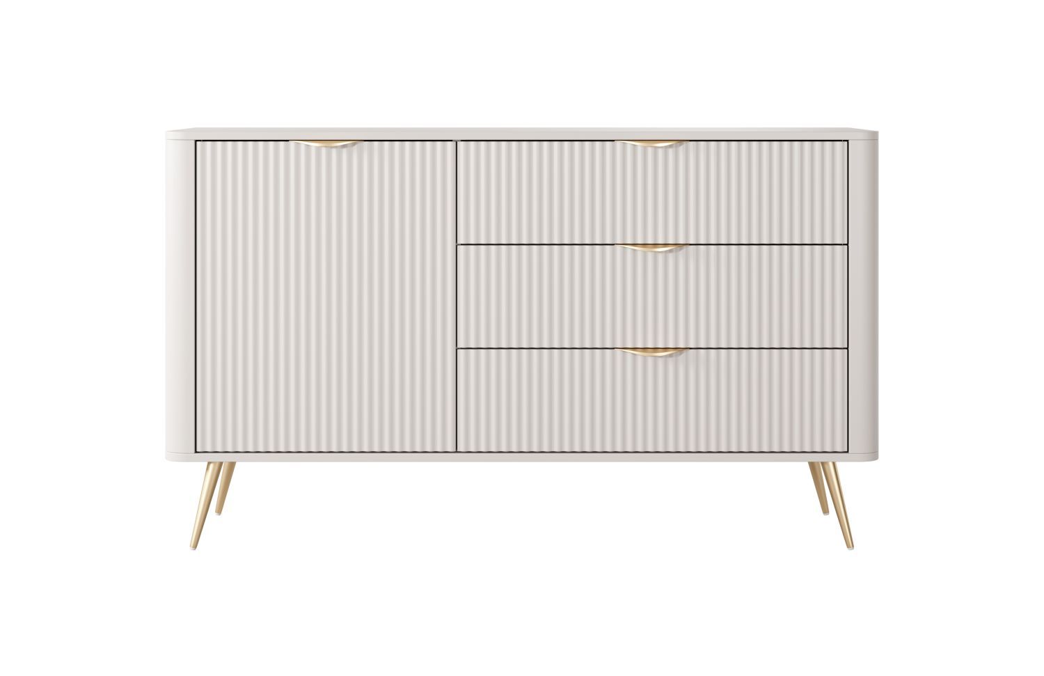 Komoda jednodrzwiowa NEST z trzema szufladami 138 cm ryflowany front beż