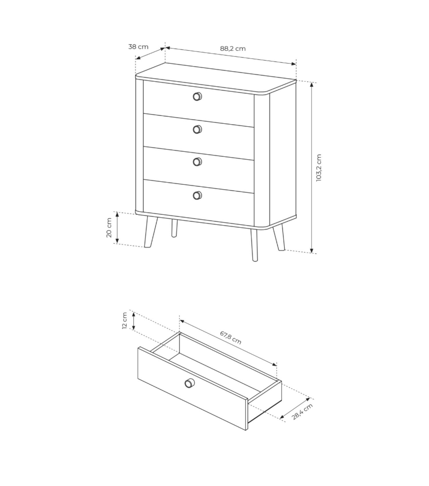 Komoda MOLLY z czteroma szufladami 88 cm dąb barista