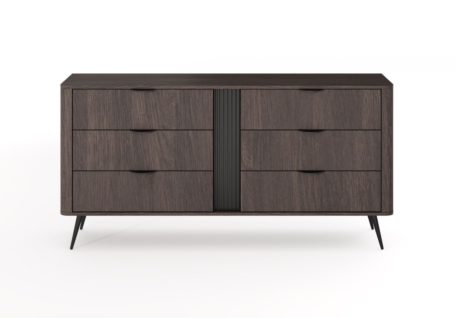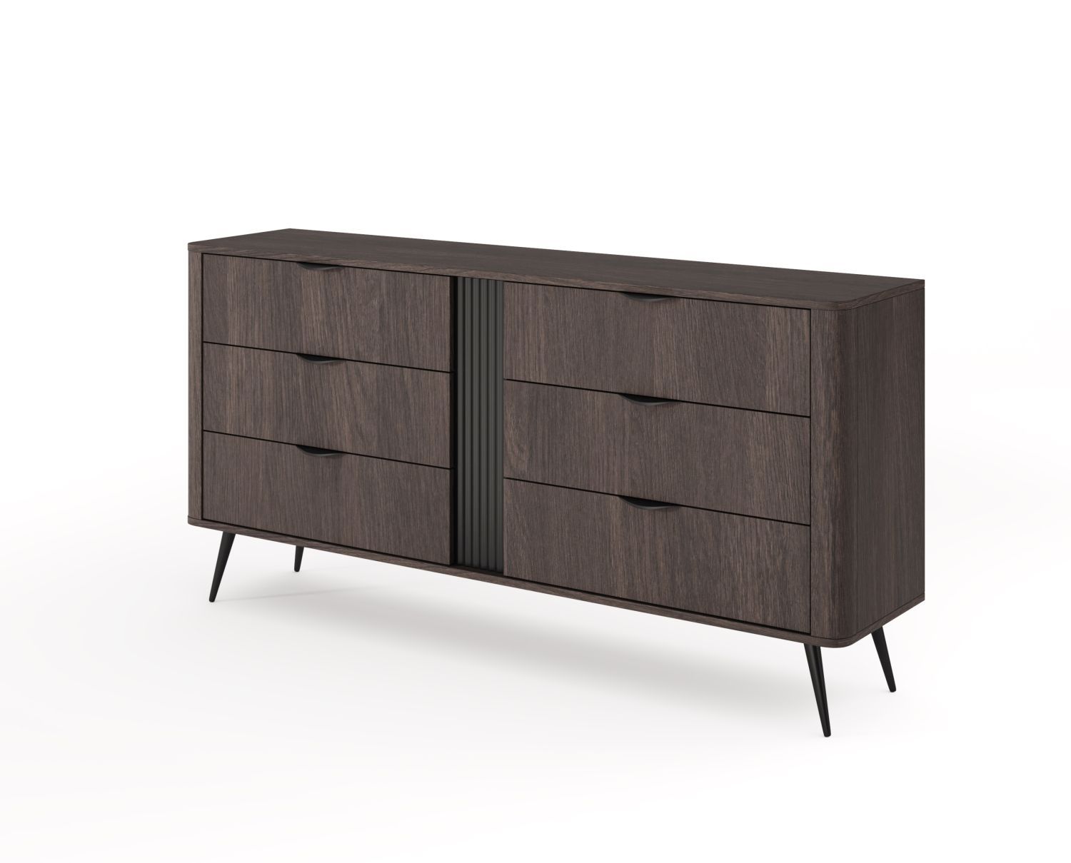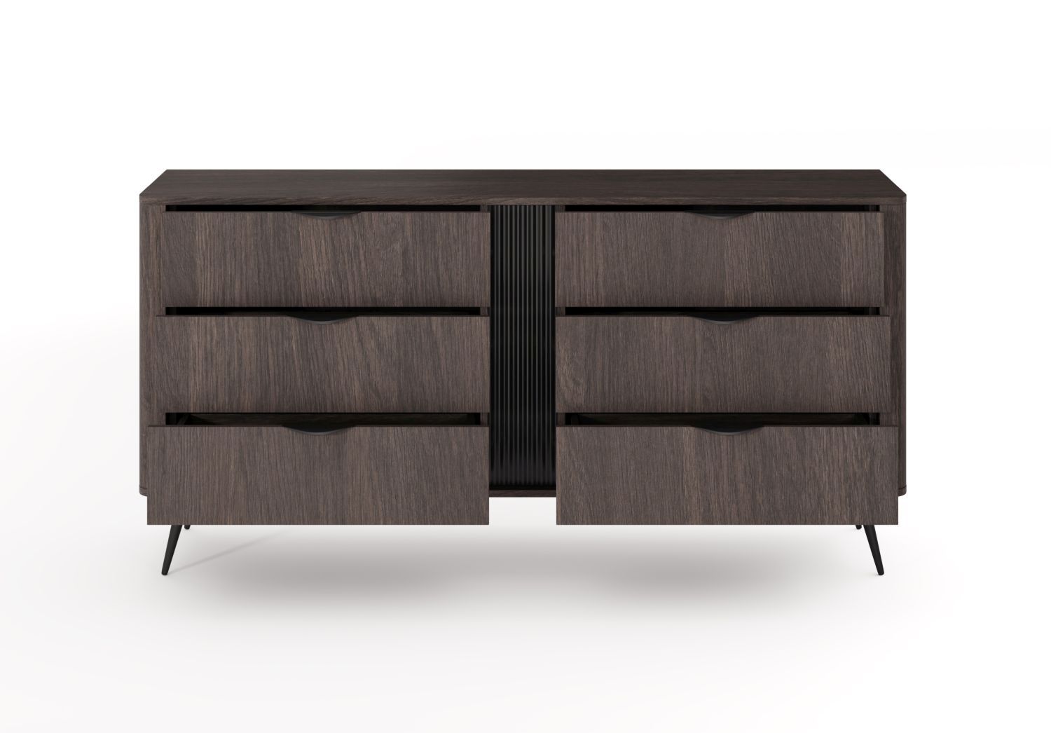 Komoda NUBE z sześcioma szufladami 163 cm ryflowany akcent dąb dunin, czarny
