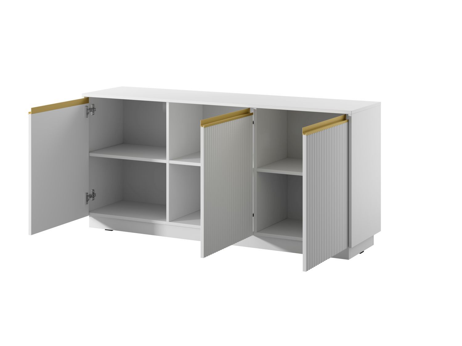 Komoda trzydrzwiowa ALDO 153 cm ryflowany front biały