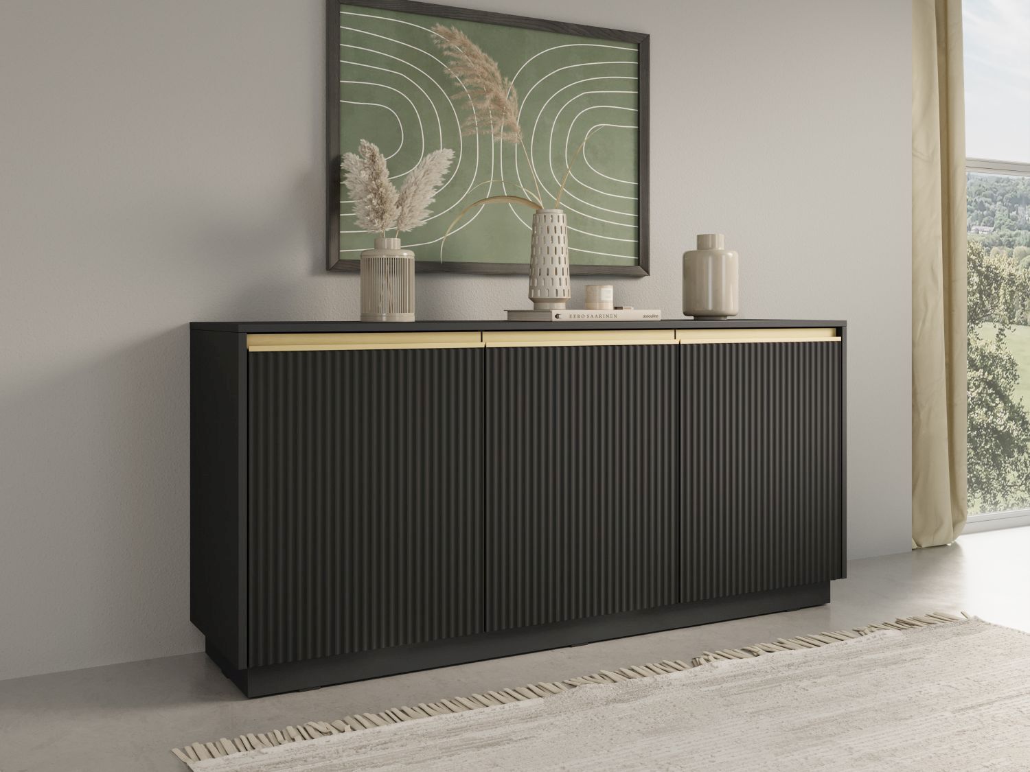 Komoda trzydrzwiowa ALDO 153 cm ryflowany front czarny
