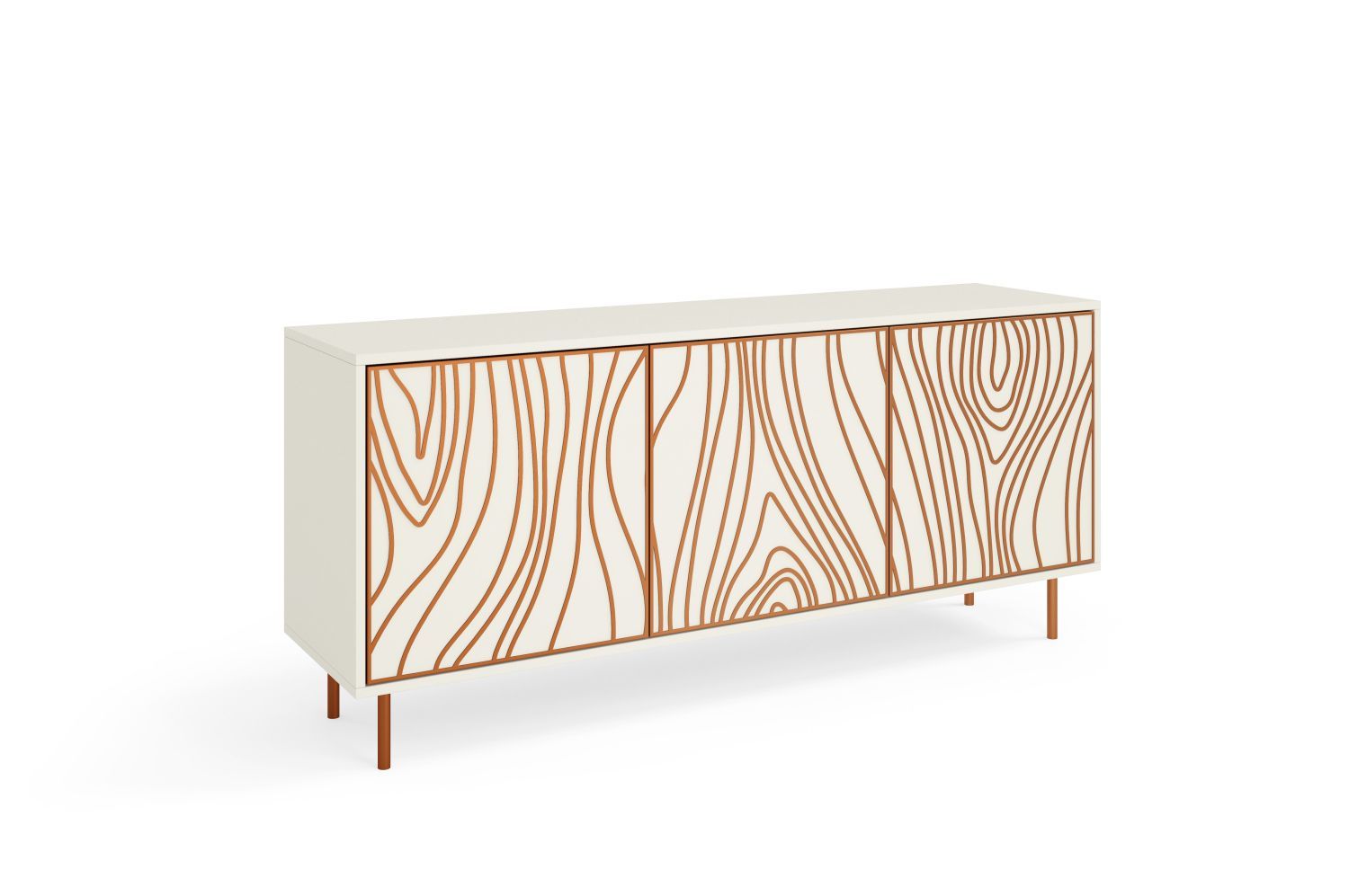 Komoda trzydrzwiowa ALTORE 164 cm z frontami zdobionymi brązowym wzorem, kaszmir
