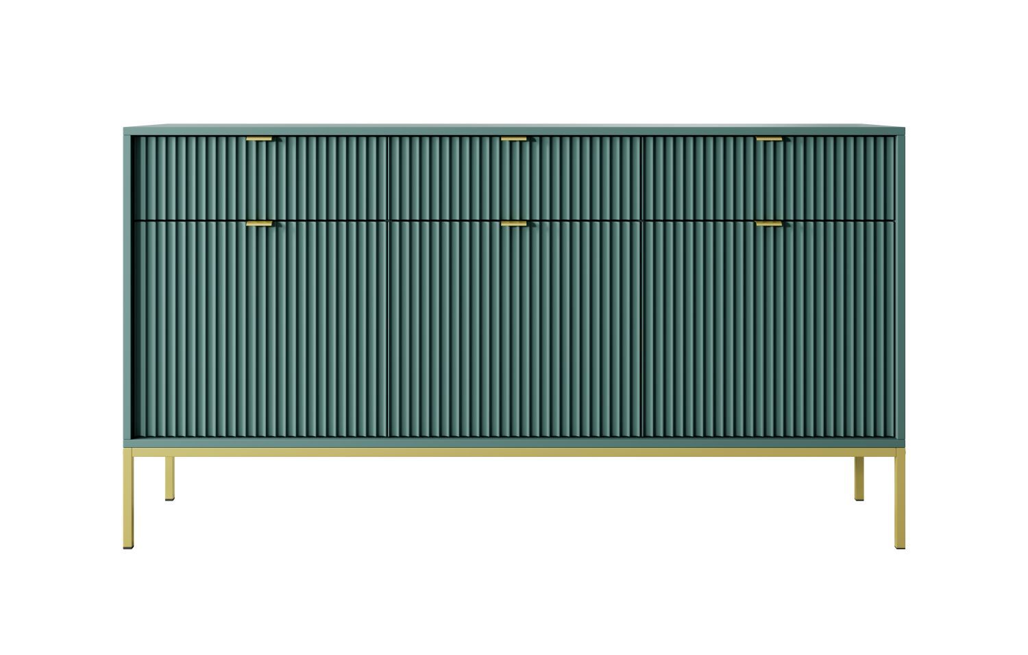 Komoda trzydrzwiowa ORT z trzema szufladami 154 cm ryflowany front zielony Komoda trzydrzwiowa ORT z trzema szufladami 154 cm ryflowany front zielony