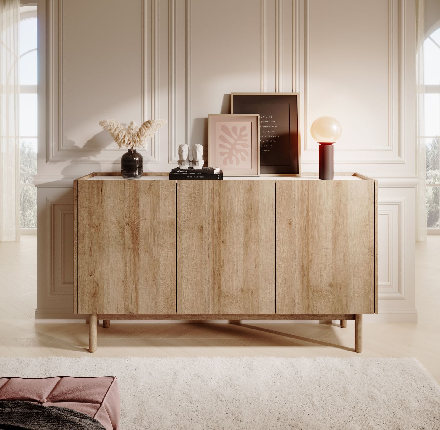 Komoda trzydrzwiowa SERENA 144 cm DĄB RIVIERA