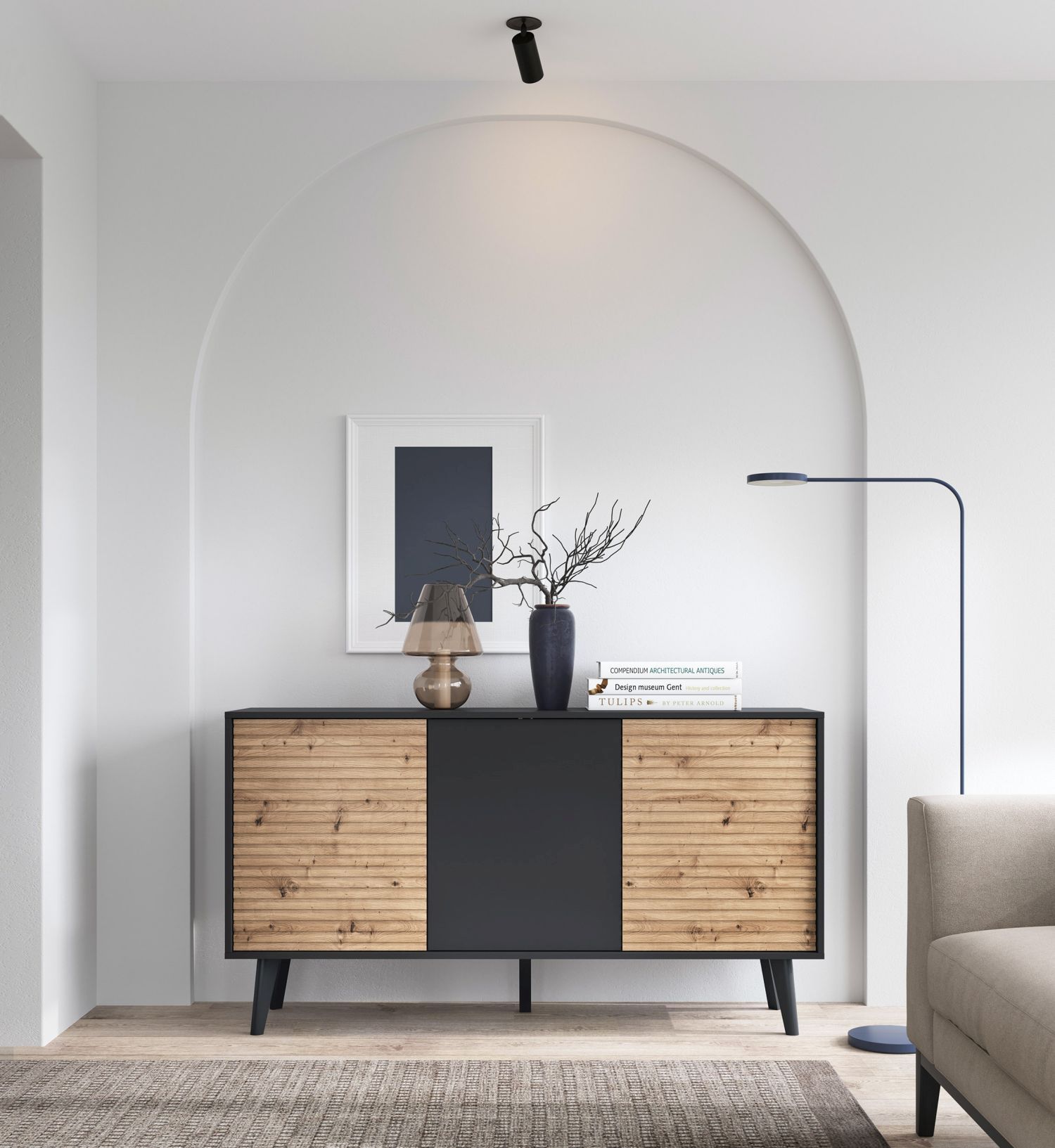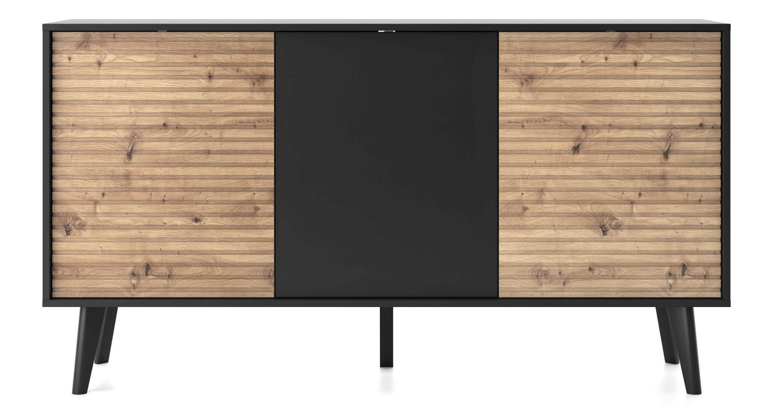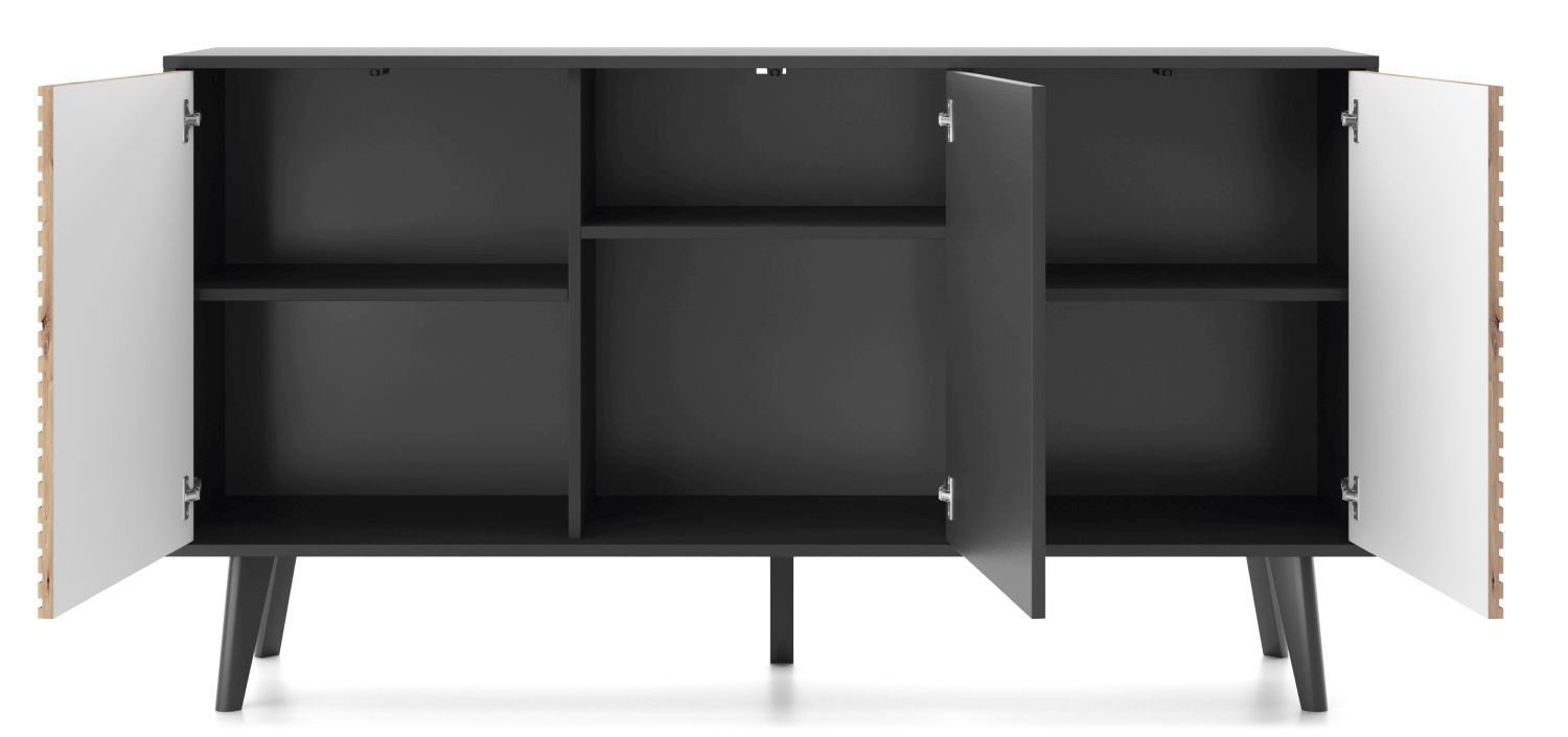 Komoda trzydrzwiowa SILA 154 cm ryflowany front czarny