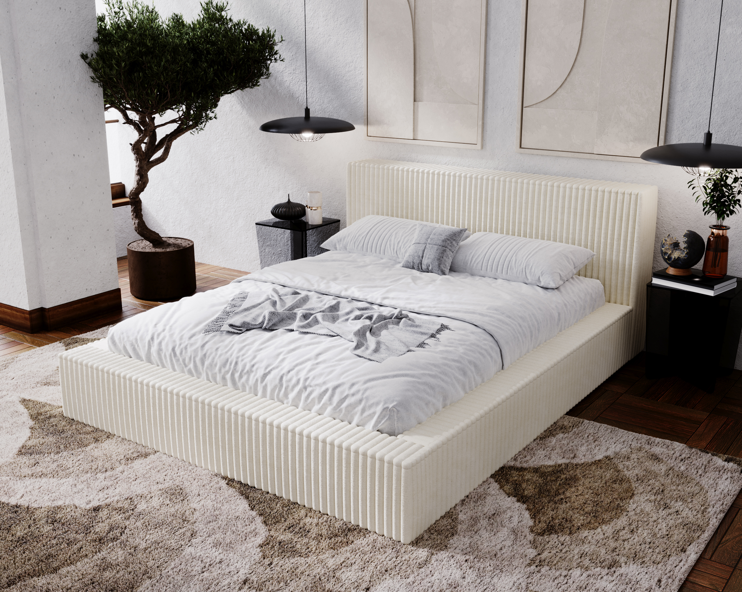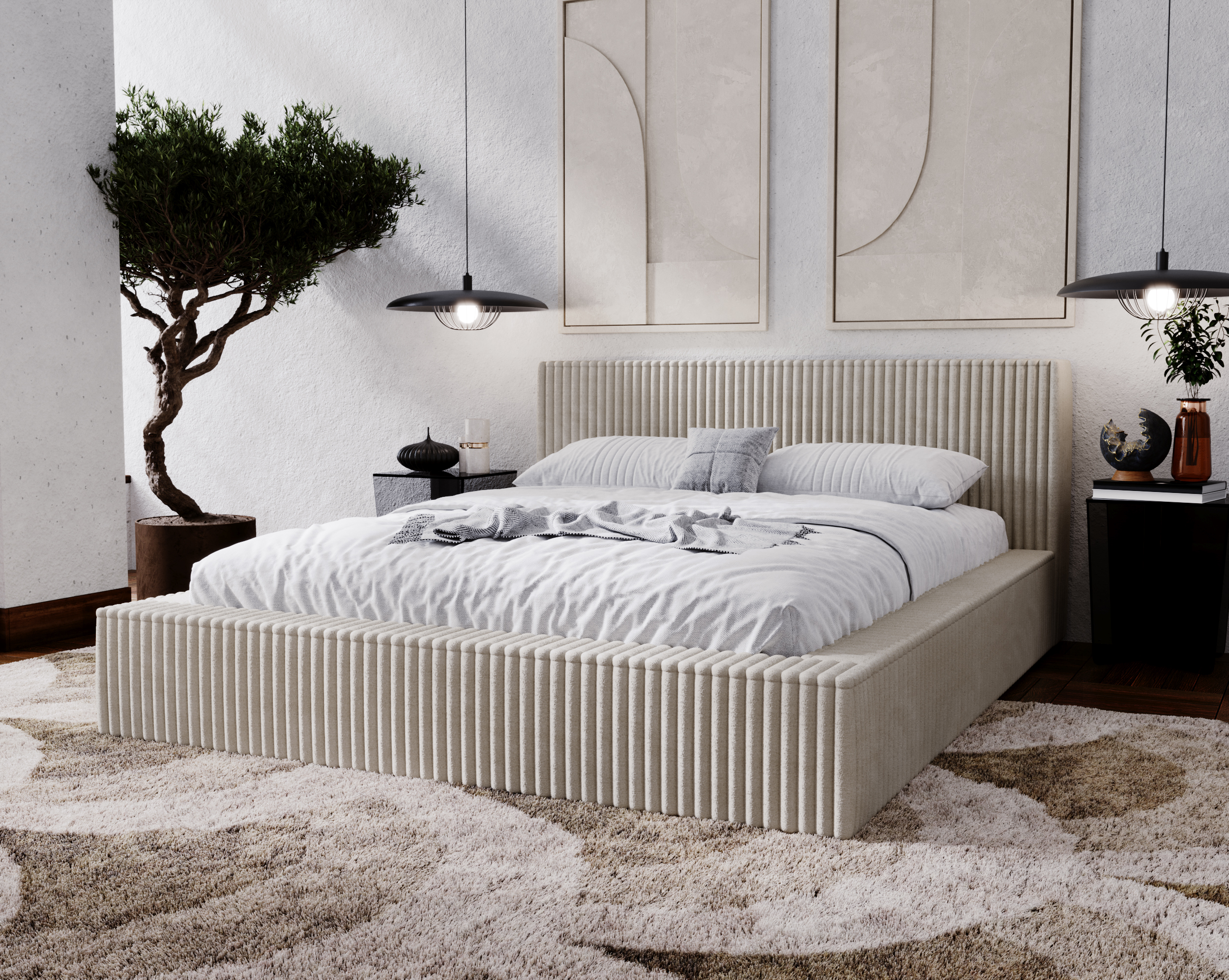 Model MODERN 160x200 został tapicerowany wysokiej jakości tkaniną o miękkiej, przyjemnej w dotyku strukturze, odporną na codzienne użytkowanie. Wysoki zagłówek z panelowymi przeszyciami nadaje wnętrzu elegancji i zapewnia komfortowe oparcie podczas odpoczynku. Solidna konstrukcja łóżka gwarantuje stabilność i trwałość, a staranne wykończenie podkreśla jego luksusowy charakter.