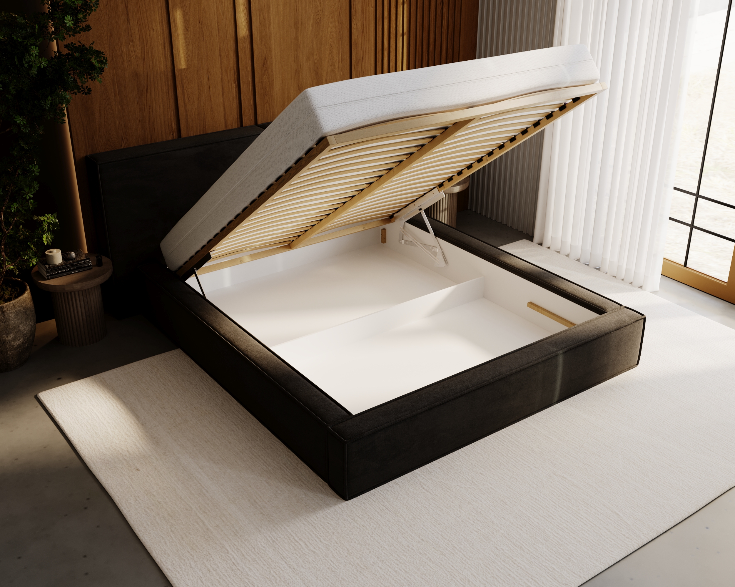 Łóżko tapicerowane TALA 180x200 z pojemnikiem, przeszycia pionowe