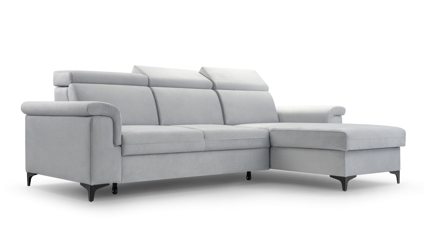 Narożnik z funkcją spania ALBANO jasnoszary z pojemnikiem L-kształtny