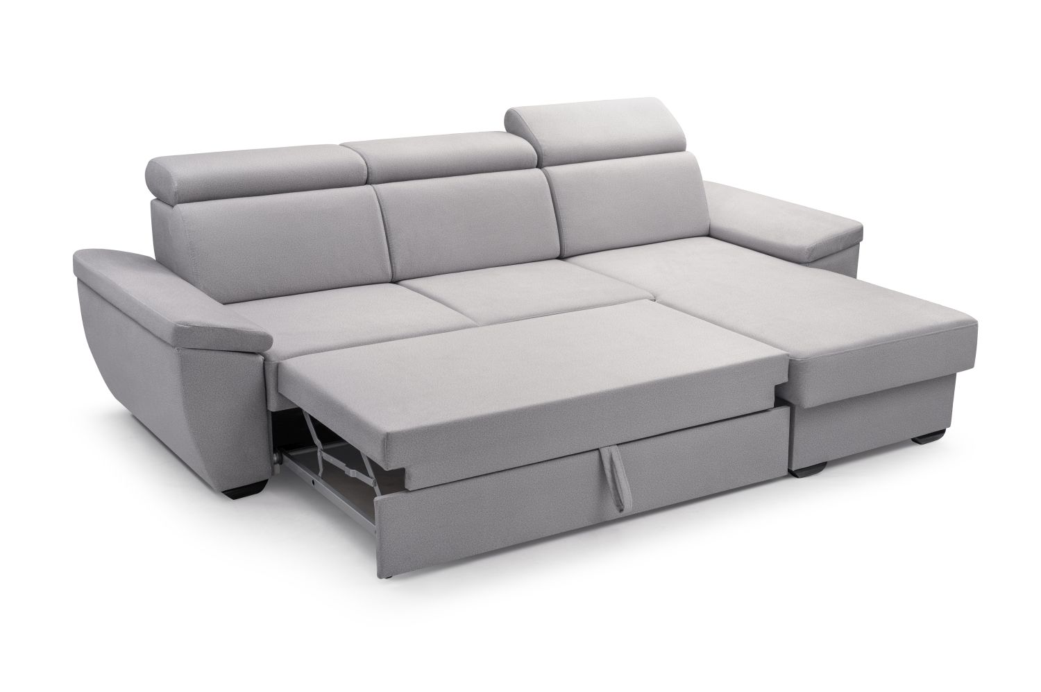 Nowoczesny styl i wygoda w eleganckiej formie — narożnik ALBANO jasnoszary to mebel, który łączy funkcjonalność z dopracowanym designem. Jego L-kształtny układ gwarantuje komfortowe miejsce do wypoczynku, idealnie dopasowane do wnętrz o współczesnym charakterze.Model wyposażono w funkcję spania oraz pojemny schowek na pościel, dzięki czemu z łatwością przekształca się w przestrzeń nocnego relaksu. Regulowane zagłówki pozwalają na dopasowanie pozycji siedzenia, a solidne metalowe nogi podkreślają stabilność i nowoczesny styl. Tapicerka w odcieniu antracytu dodaje wnętrzu głębi i elegancji, tworząc spójną i wyrafinowaną całość.
