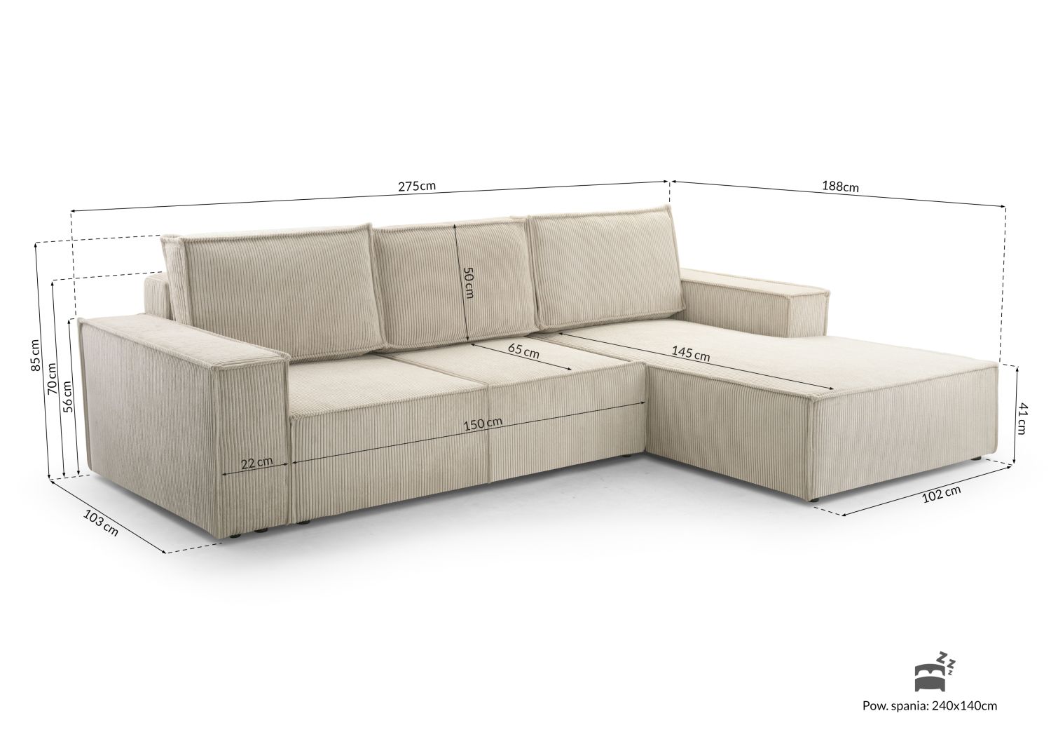 Narożnik z funkcją spania ARMONA jasnoszary z pojemnikiem L-kształtny
