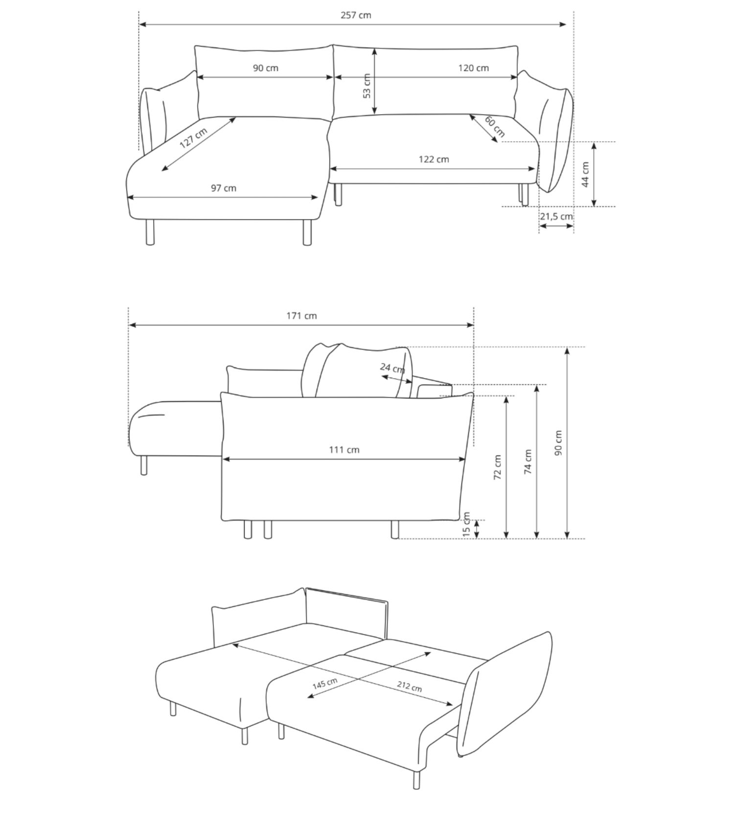 | Wymiary | 171 × 257 × 90 cm |