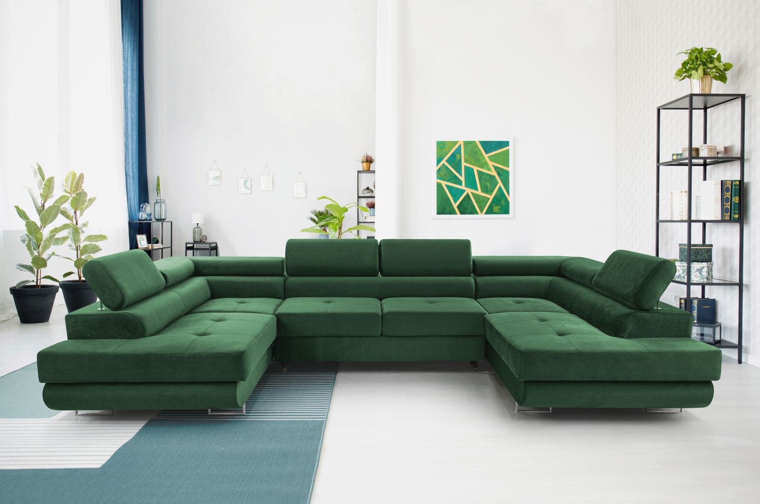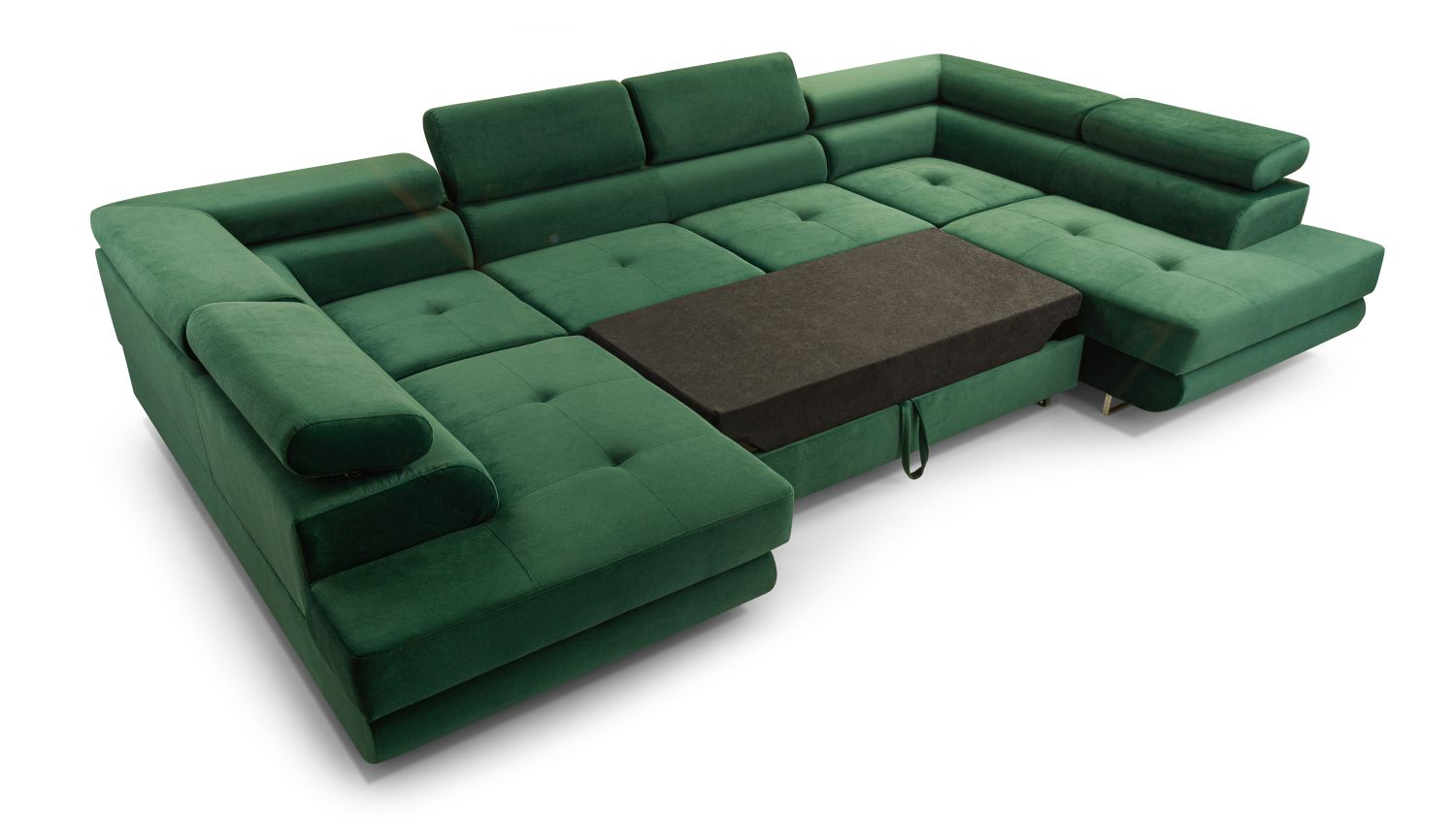 Narożnik z funkcją spania BELLUNO U ciemnozielony z pojemnikiem U-kształtny