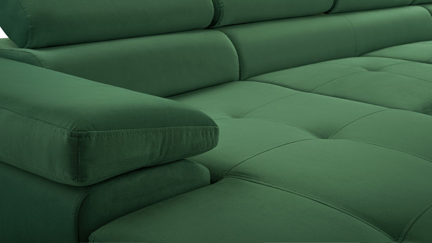 Nowoczesna elegancja i funkcjonalność w kompaktowej formie — narożnik BELLUNOK MINI ciemnozielony to mebel, który łączy stylowy wygląd z praktycznymi rozwiązaniami. Jego L-kształtny układ doskonale sprawdzi się w każdym salonie, oferując komfort i wyrafinowany design.Model posiada funkcję spania oraz pojemny schowek na pościel, co czyni go wygodnym i wszechstronnym. Regulowane zagłówki i szerokie podłokietniki zapewniają wysoki poziom komfortu, a eleganckie pikowane siedzisko podkreśla nowoczesny charakter mebla. Metalowe nogi dodają mu lekkości i stabilności, a czarna tapicerka wprowadza do wnętrza klasę i ponadczasowy styl.