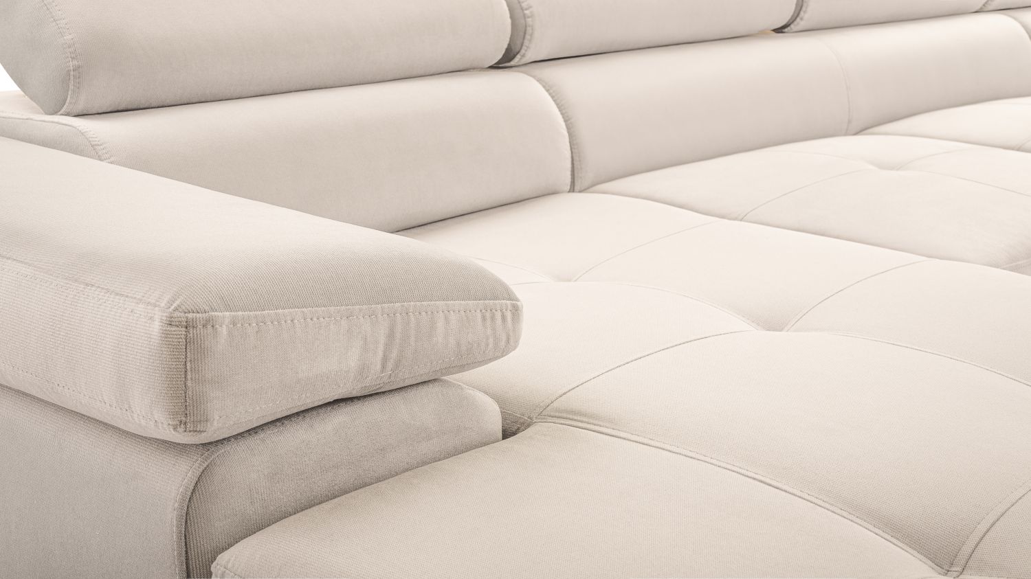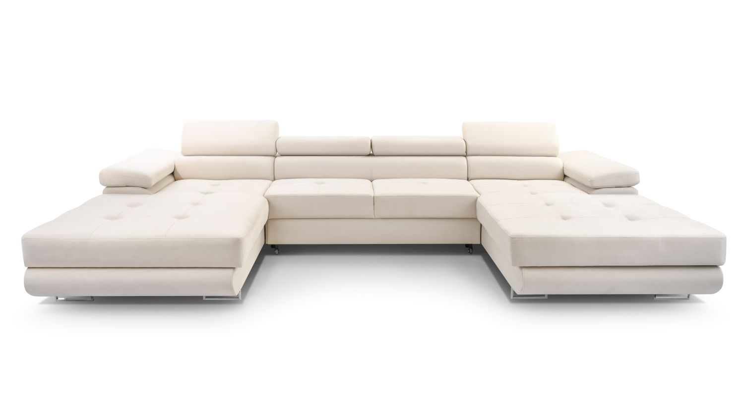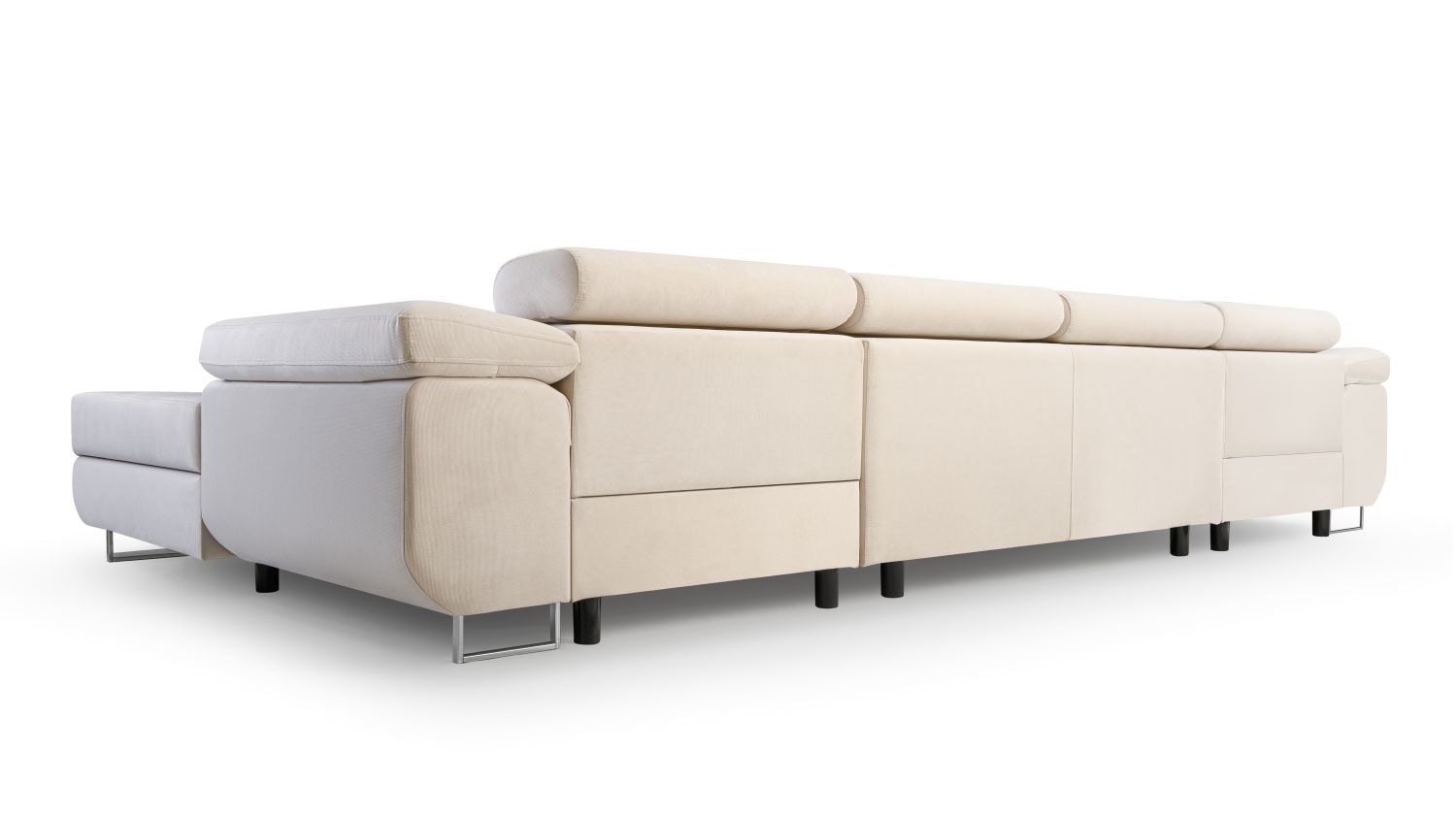 Nowoczesny styl i pełen komfort — narożnik BELLUNOK U MINI beżowy to elegancki mebel stworzony z myślą o przestronnych i funkcjonalnych wnętrzach. Jego U-kształtny układ zapewnia maksymalną wygodę oraz idealne dopasowanie do salonu.Model wyposażono w funkcję spania oraz pojemny schowek na pościel, co czyni go praktycznym rozwiązaniem zarówno na co dzień, jak i dla gości. Regulowane zagłówki, pikowane siedziska i stabilne metalowe nogi podkreślają jego nowoczesny charakter. Ciemnoszara tapicerka dodaje całości elegancji i harmonii, tworząc mebel, który łączy estetykę z wygodą.