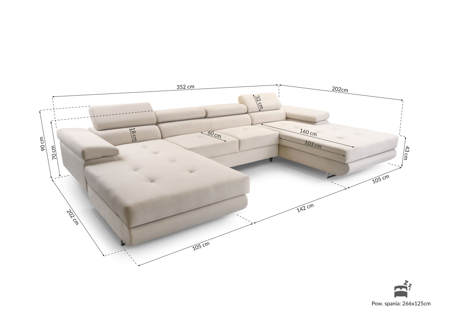 Narożnik z funkcją spania BELLUNOK U MINI ciemnoszary z pojemnikiem U-kształtny