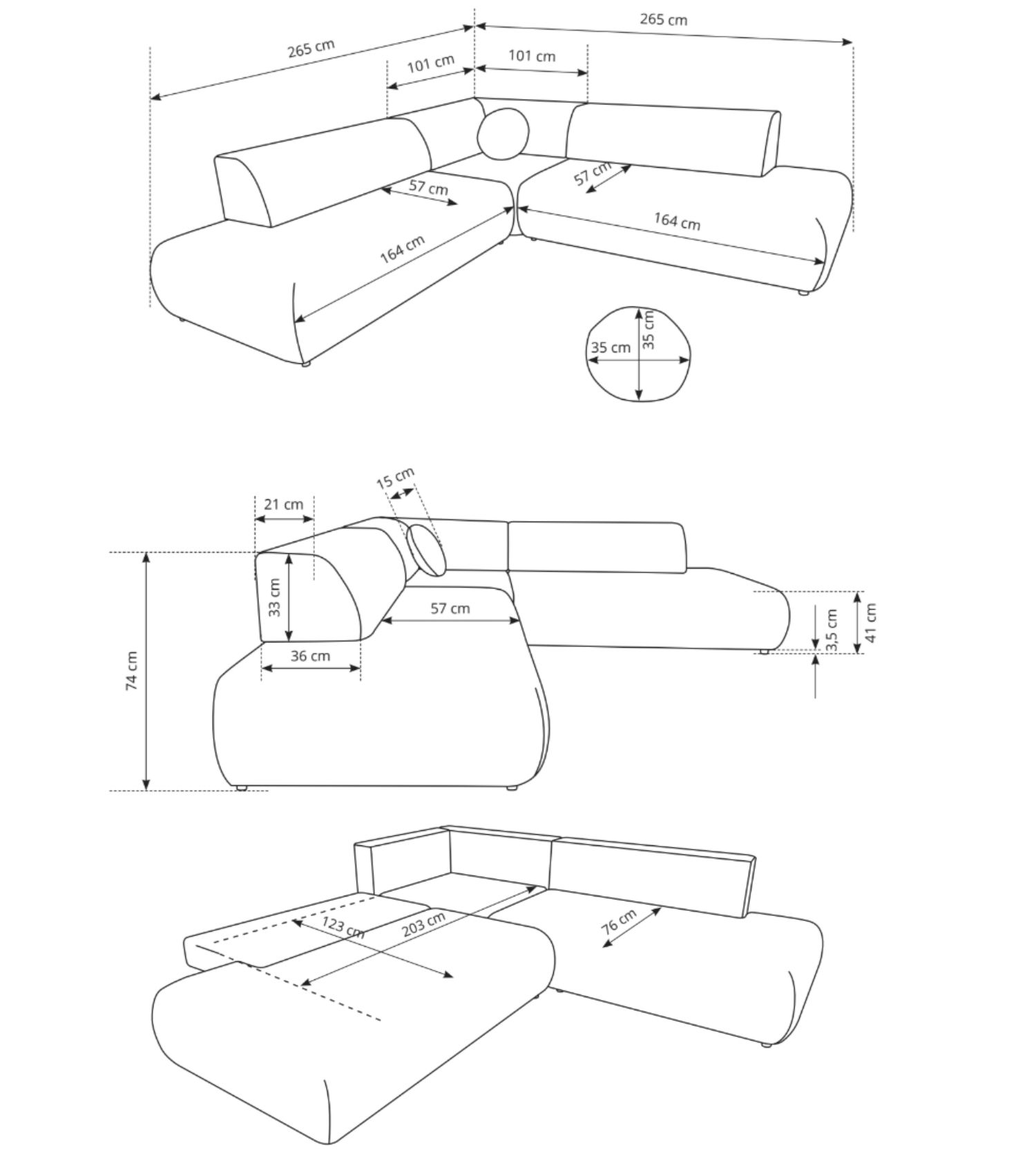 Wymiary265 × 265 × 74 cm