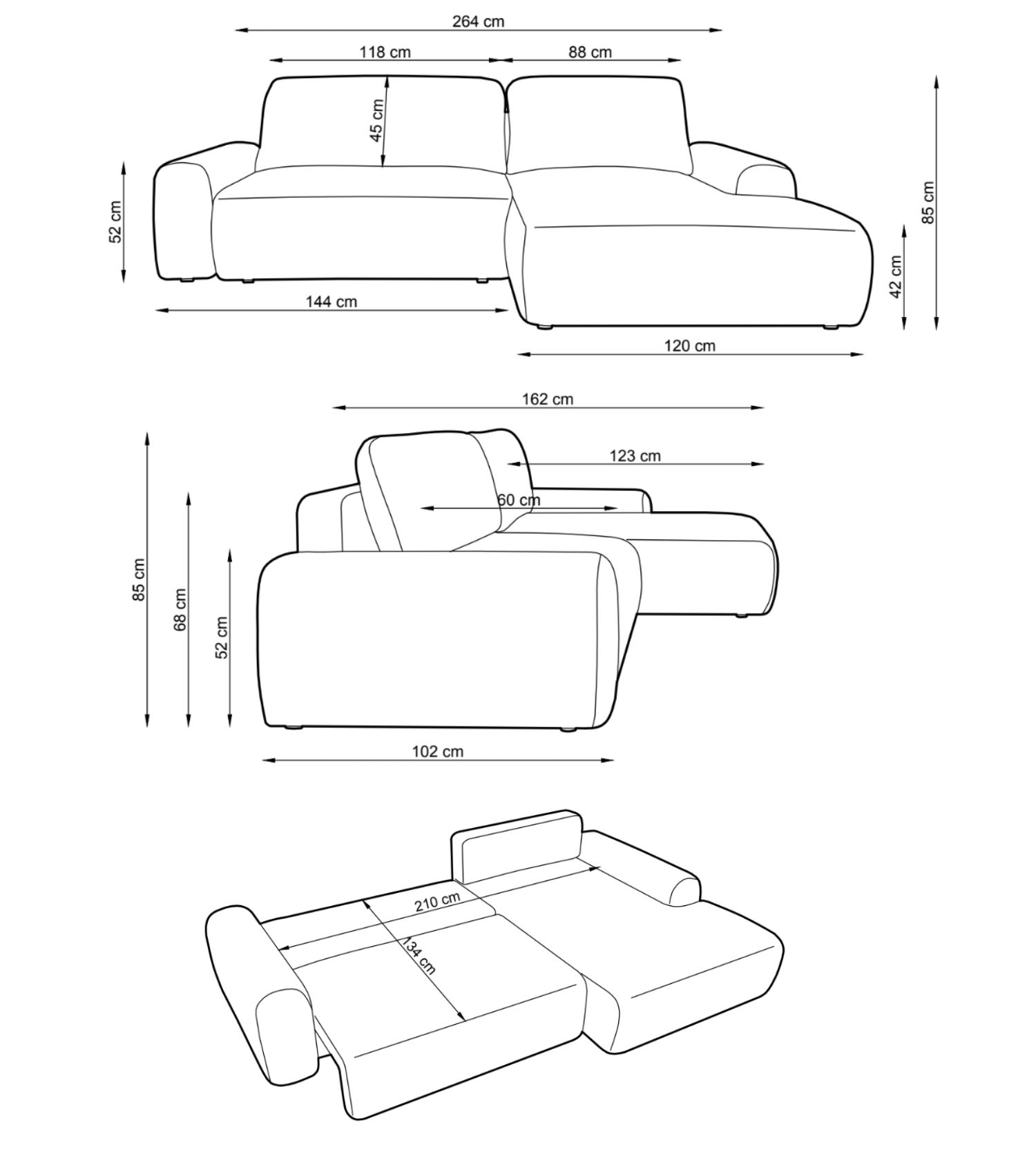 | Wymiary | 162 × 264 × 85 cm |