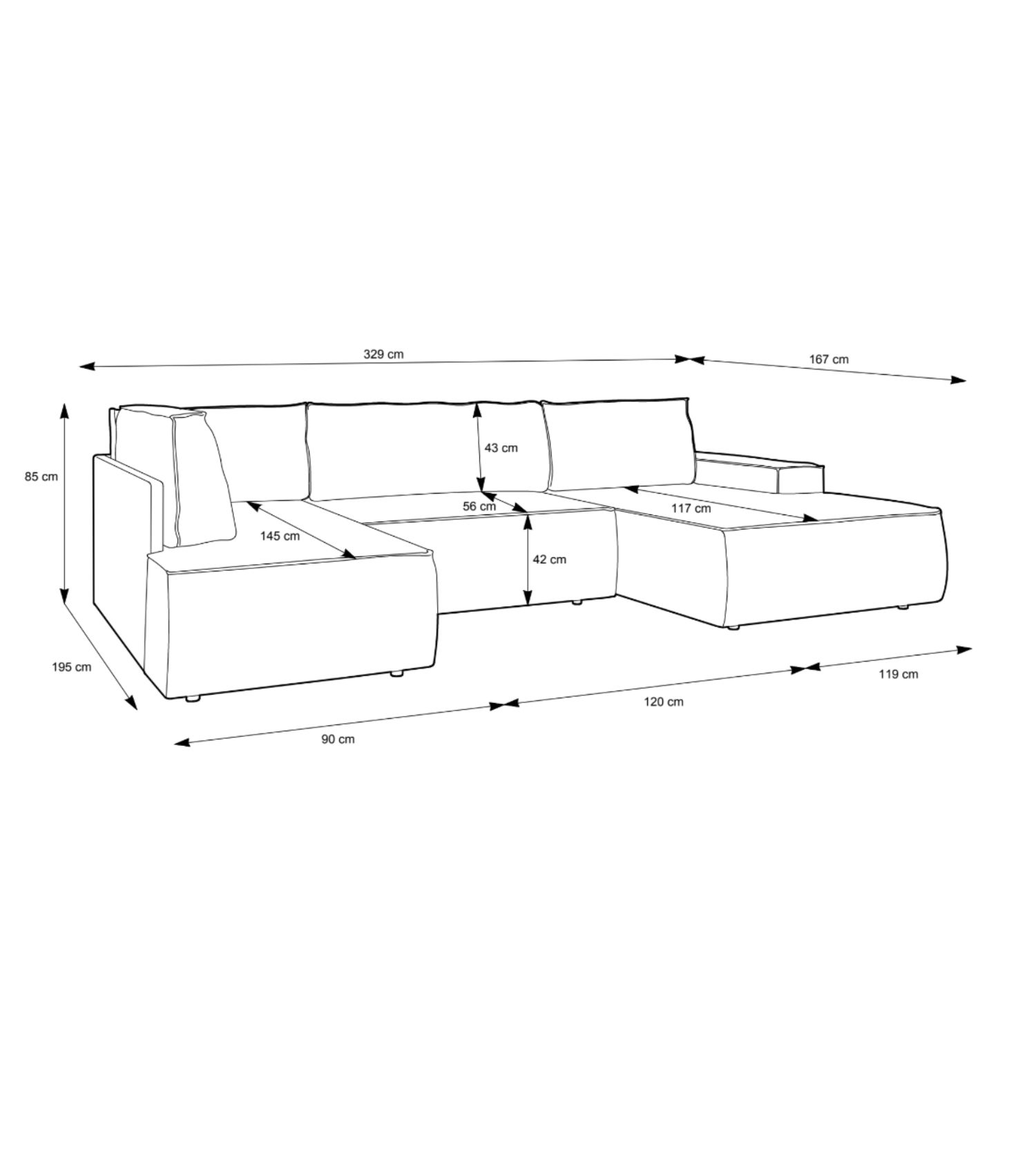 Narożnik z funkcją spania FERONA U2 z pojemnikiem U-kształtny