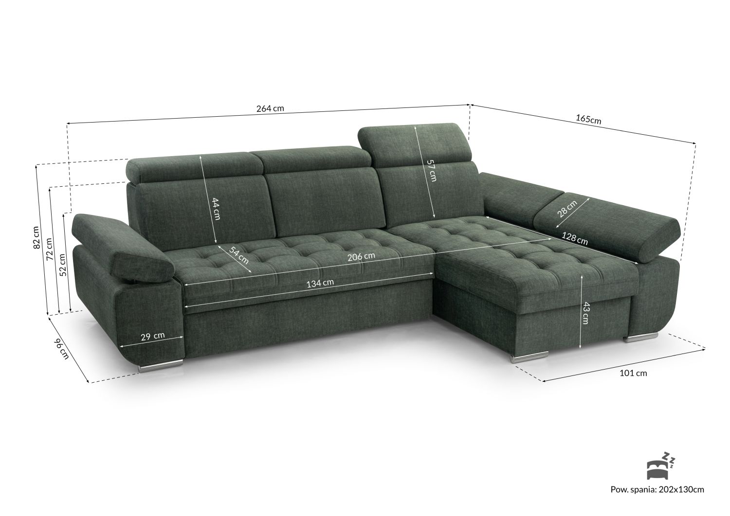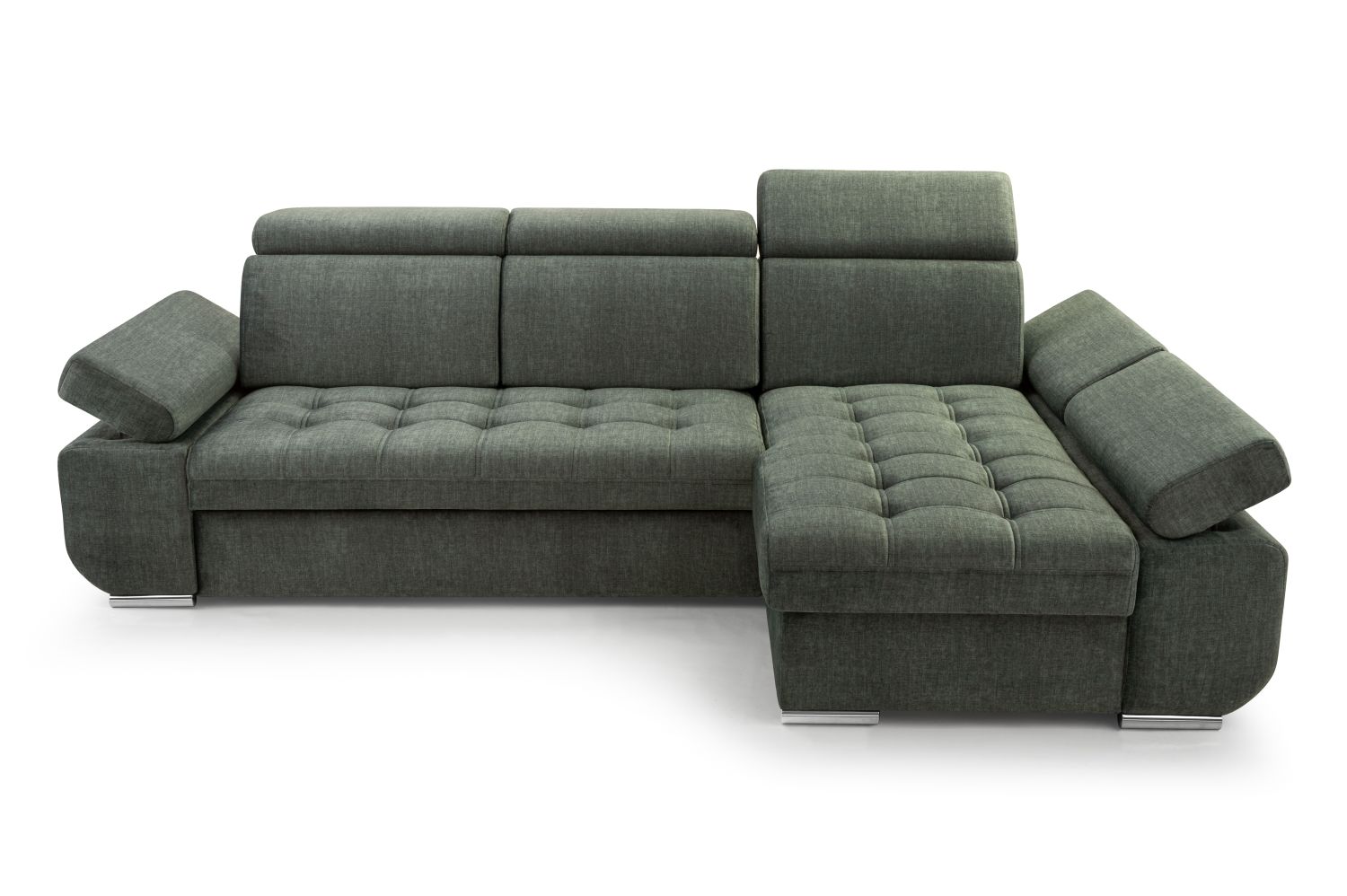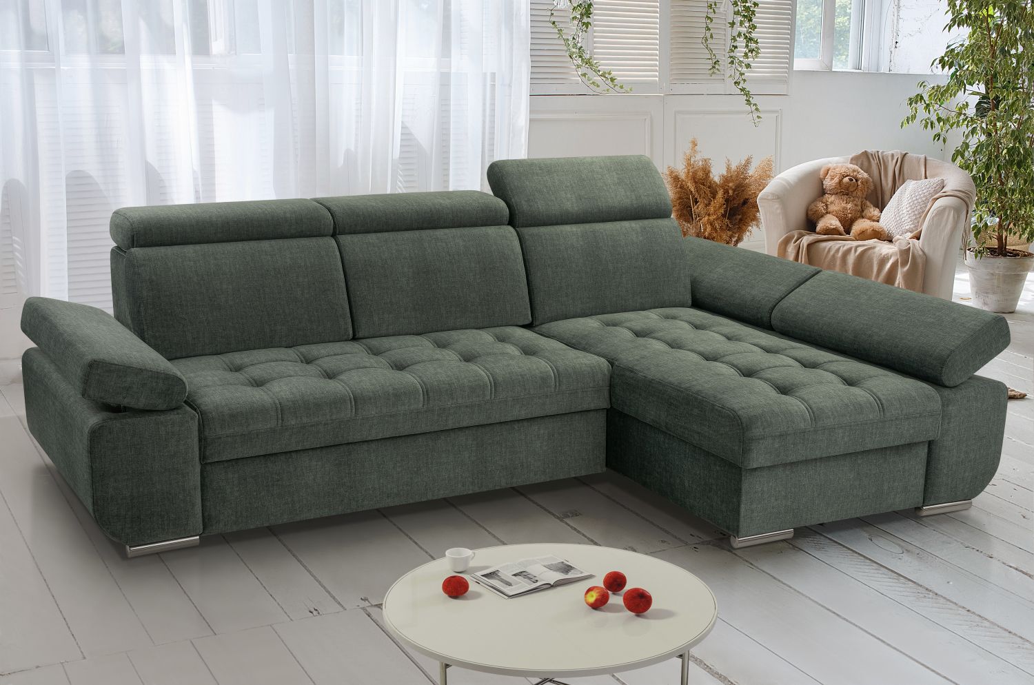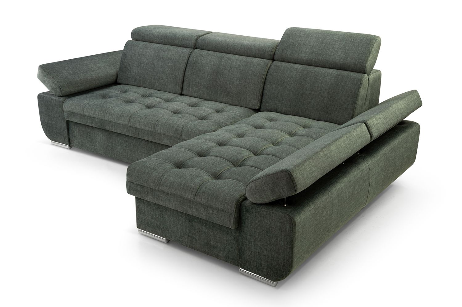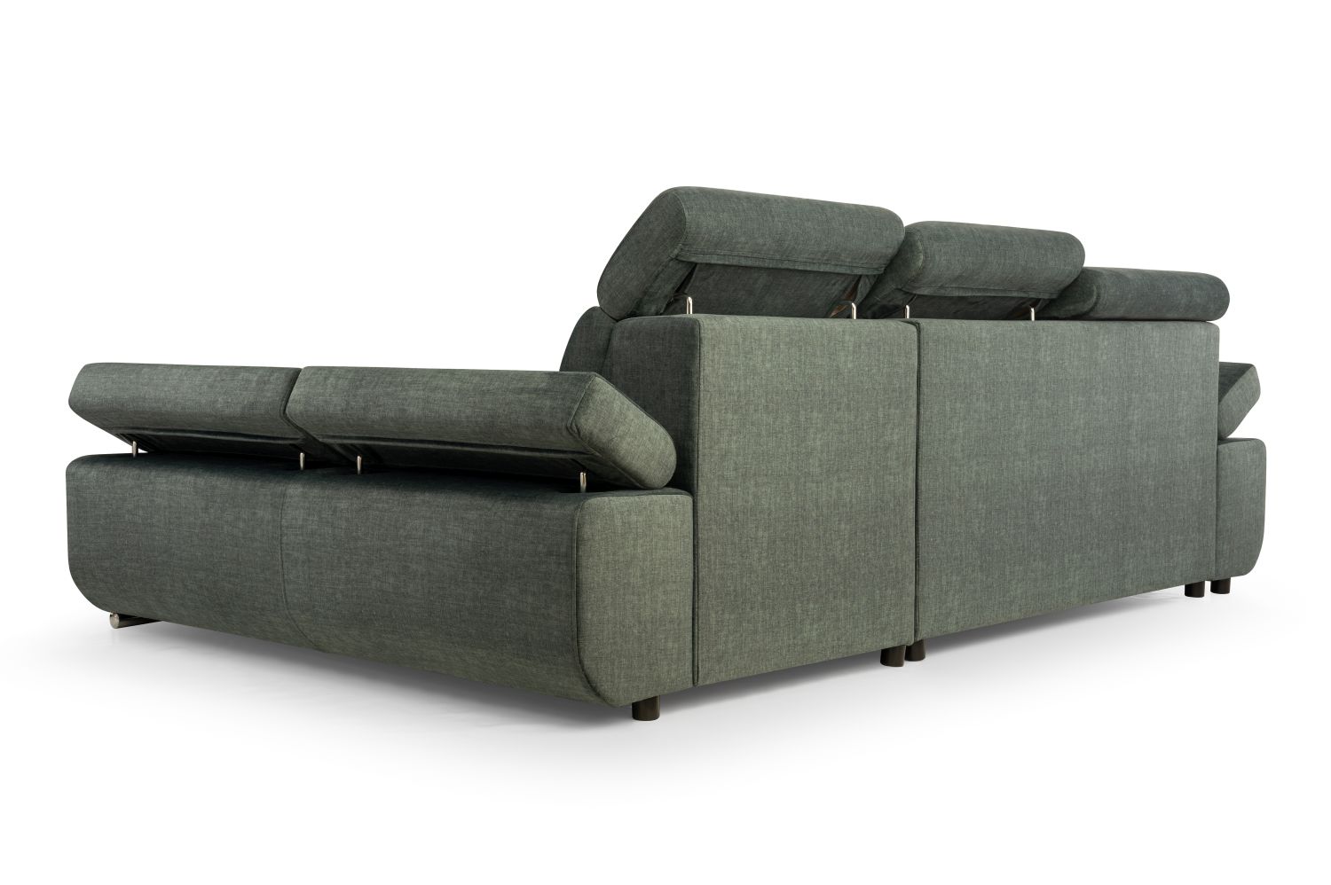 Narożnik z funkcją spania GRAVINO zielony z pojemnikiem L-kształtny