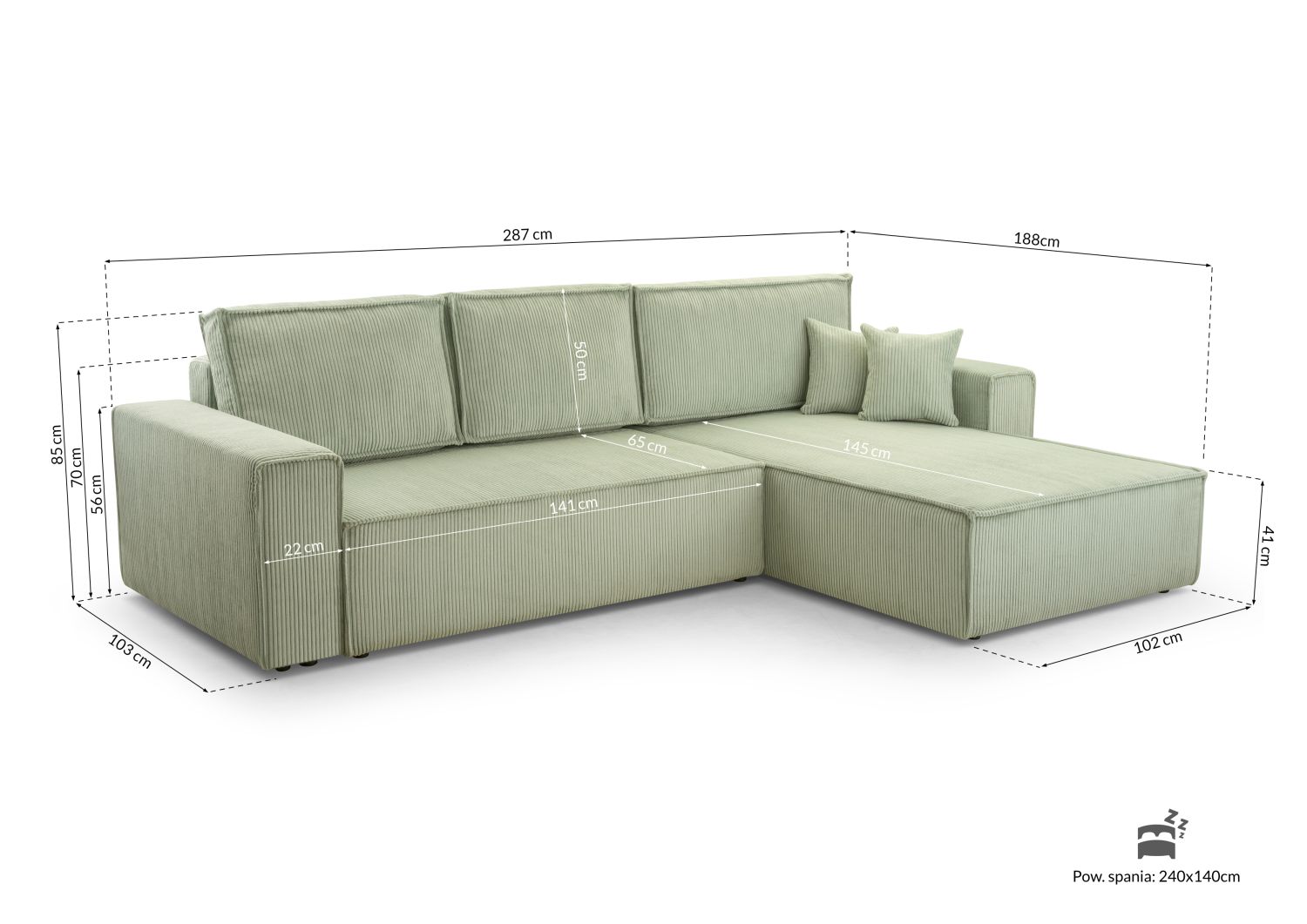 | Wymiary | 188 × 287 × 85 cm |