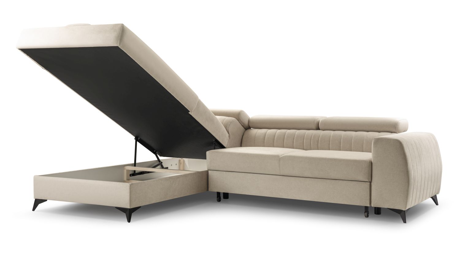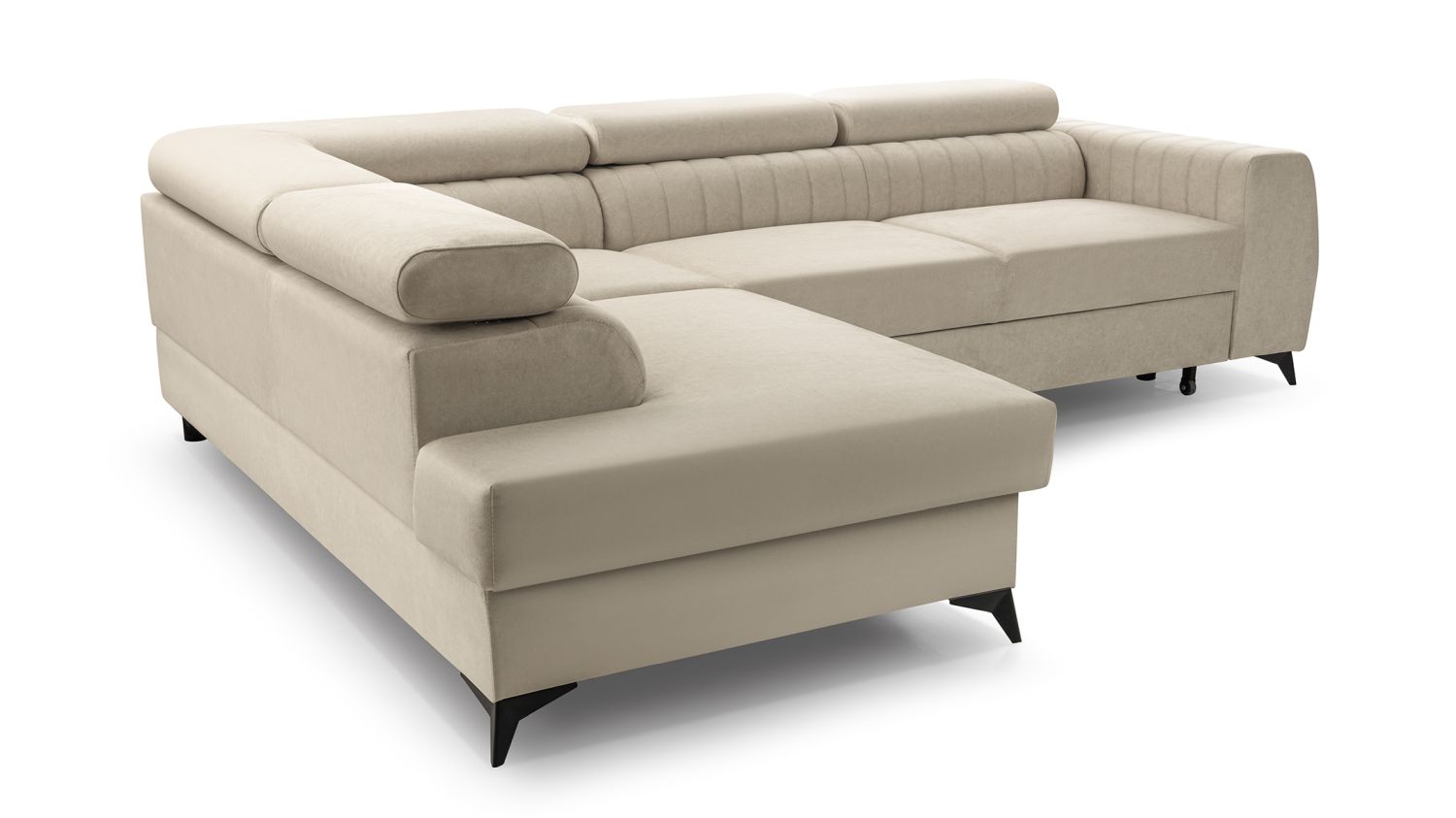 Narożnik z funkcją spania LAREDO beżowy z pojemnikiem L-kształtny