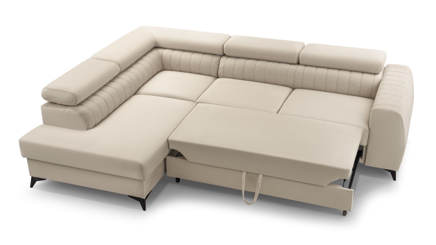 Narożnik z funkcją spania LAREDO czarny z pojemnikiem L-kształtny