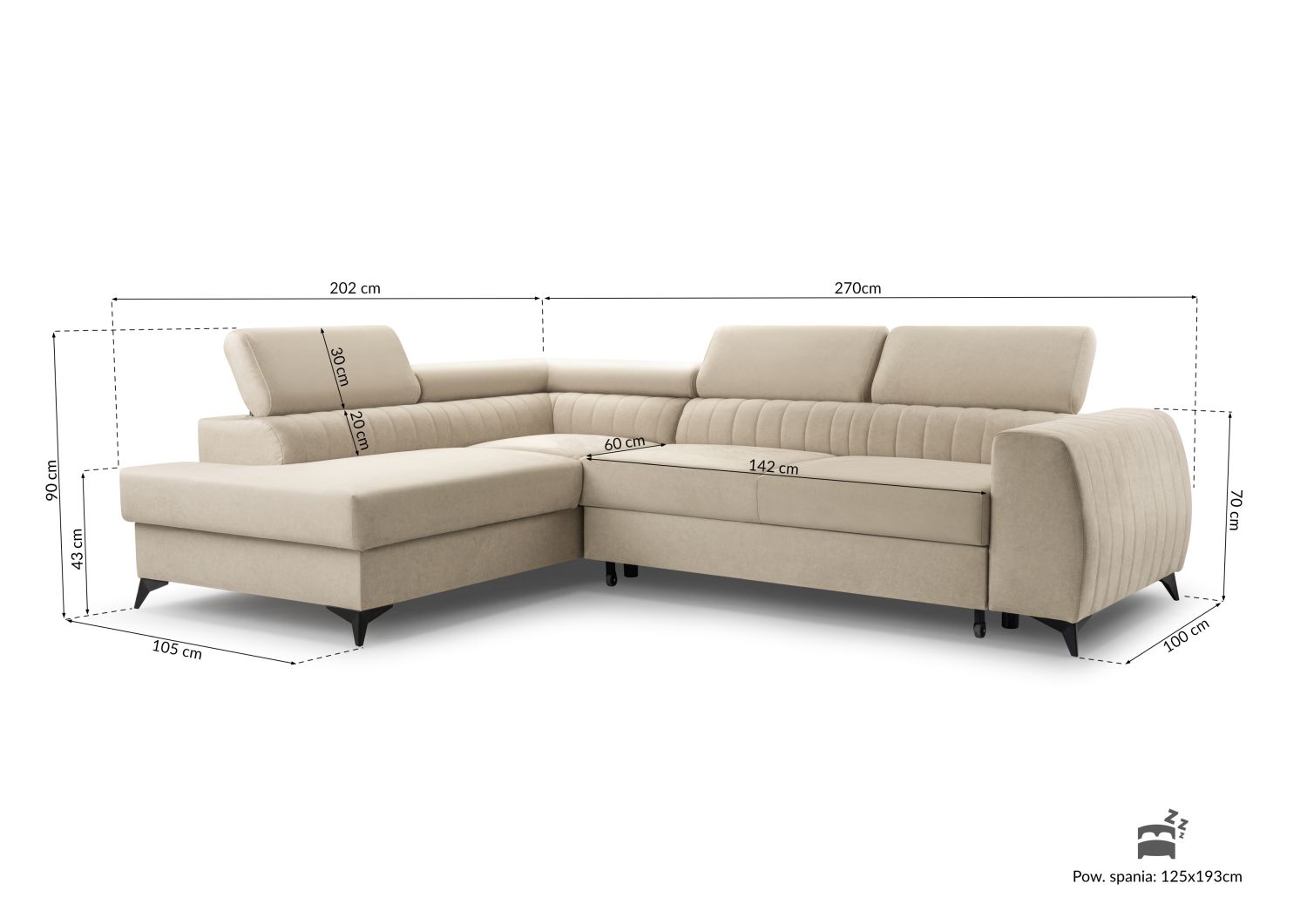 Możliwość wyboru modelu z pojemnikiem na pościel i funkcją spania.