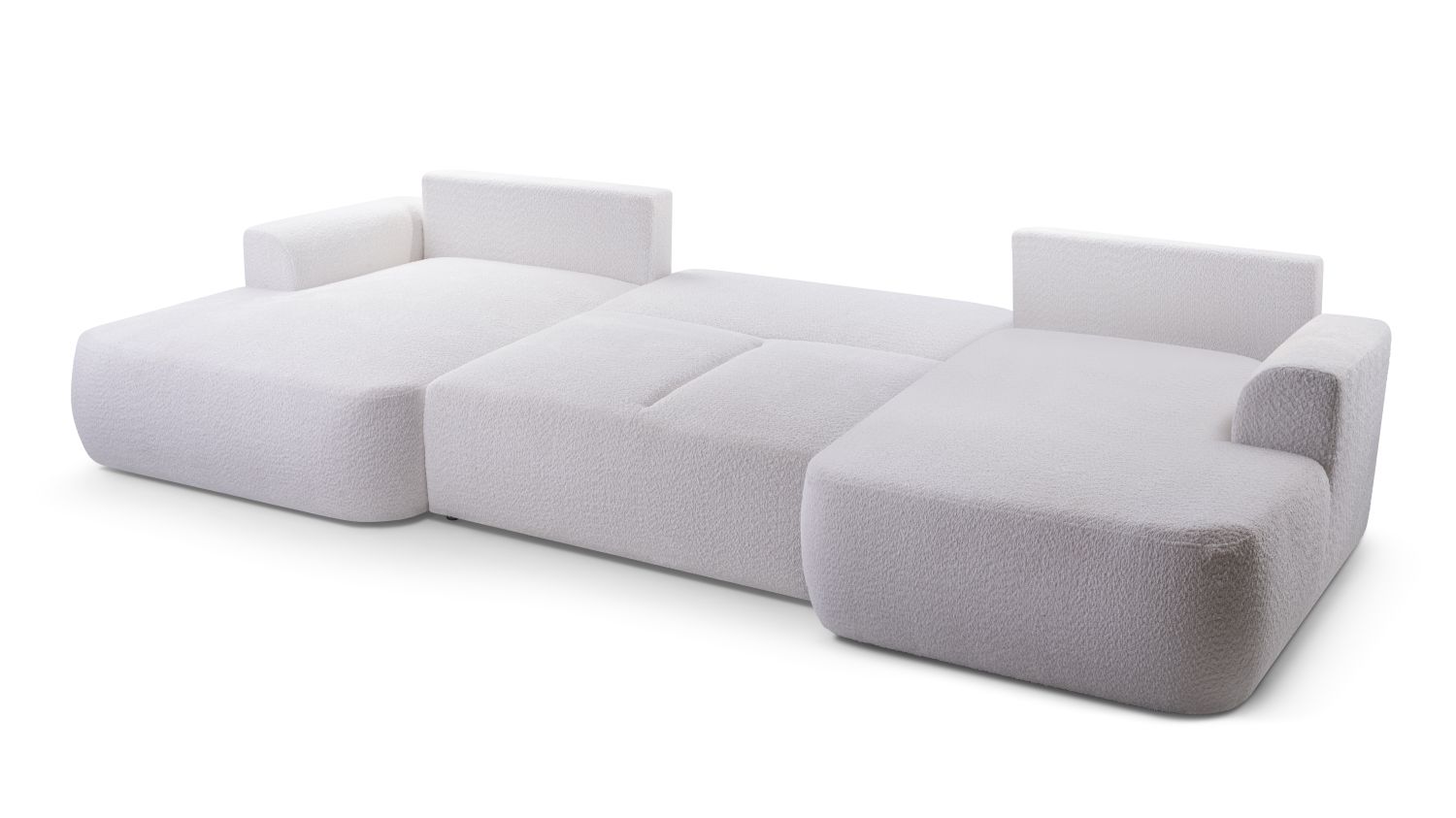 Stylowy design i przestronny komfort w jednym.Narożnik z funkcją spania VELANO U ciemny beż zachwyca nowoczesną formą i doskonałą wygodą. Miękkie oparcia, szerokie siedziska i zaokrąglone kształty nadają mu wyjątkowy charakter. Funkcja spania umożliwia szybkie przekształcenie narożnika w wygodne łóżko, a pojemnik na pościel zapewnia dodatkowe miejsce do przechowywania.