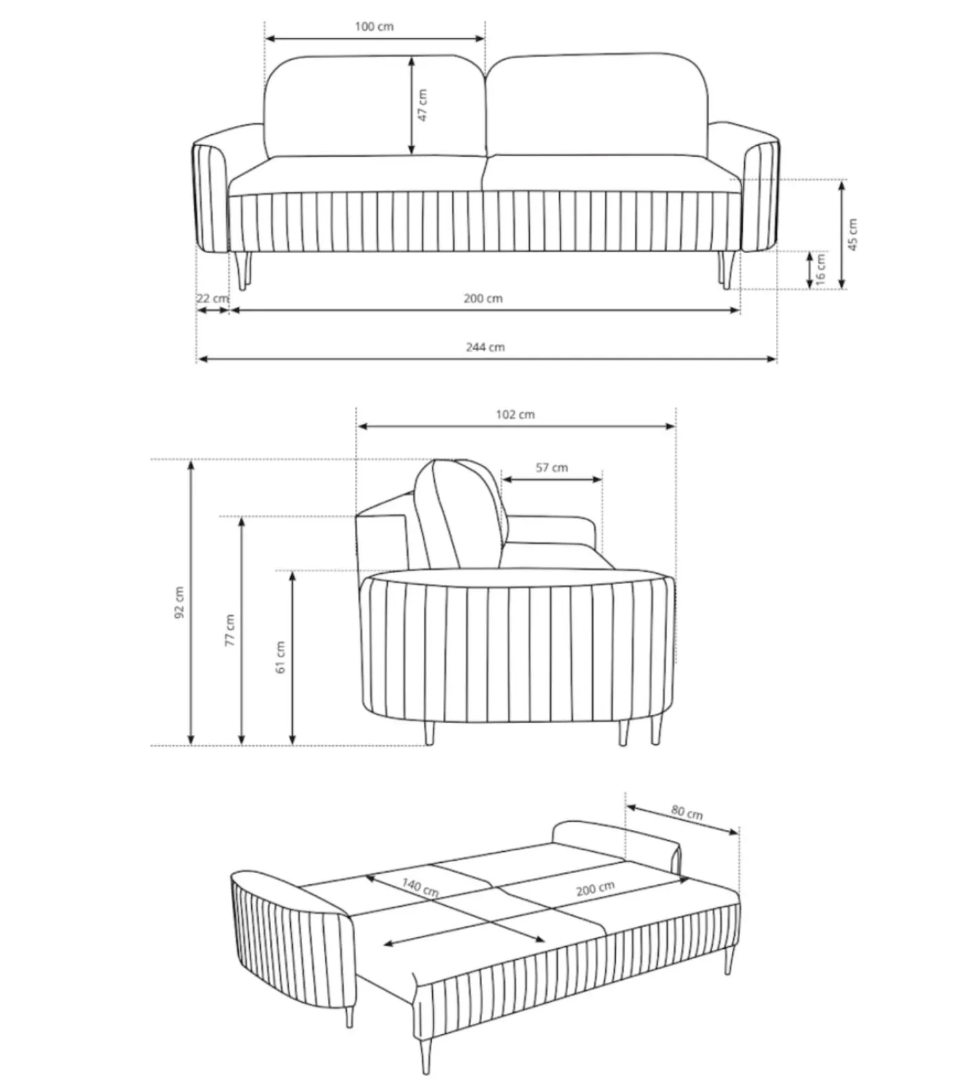 Sofa rozkładana dwu-trzyosobowa VIONA z funkcją spania i pojemnikiem na pościel