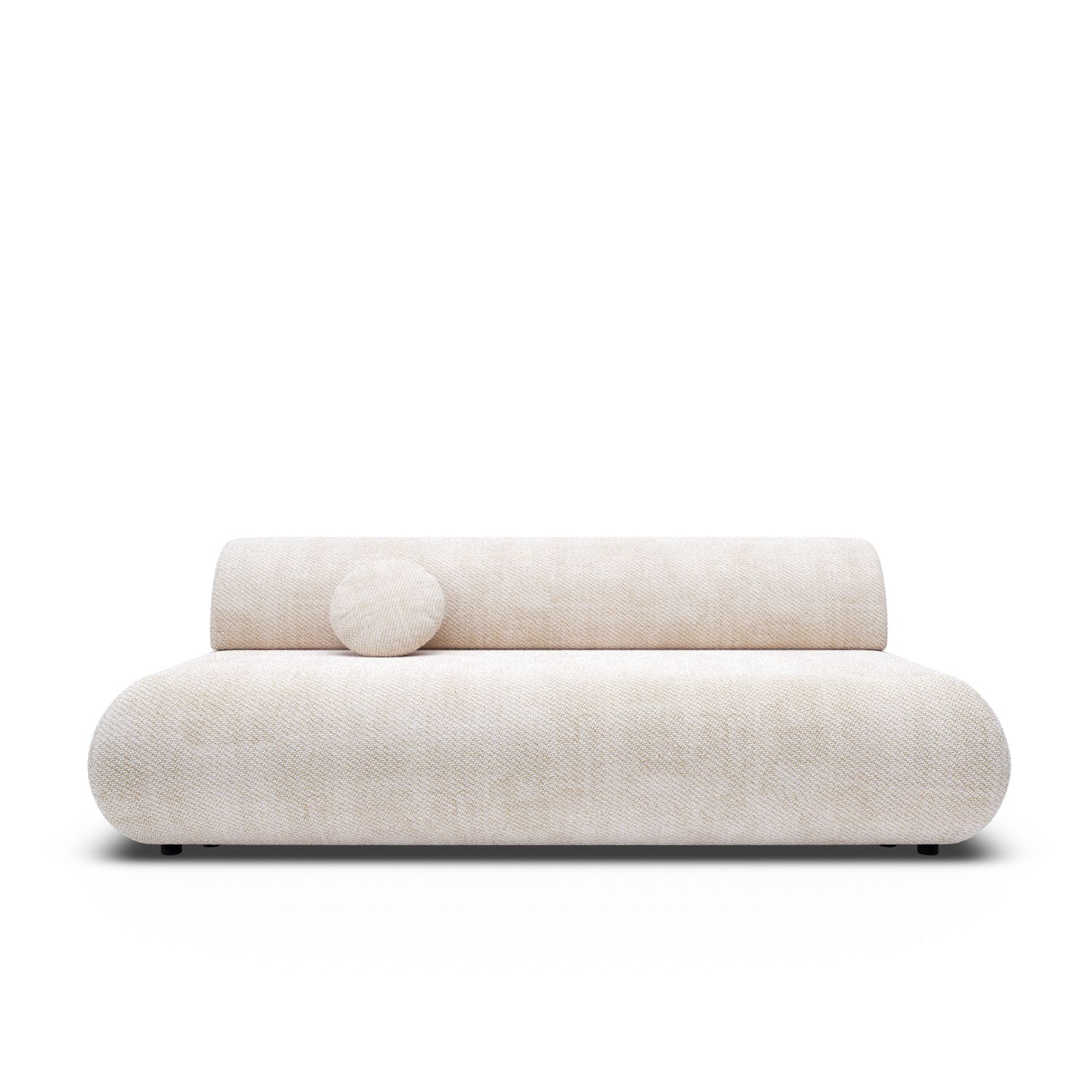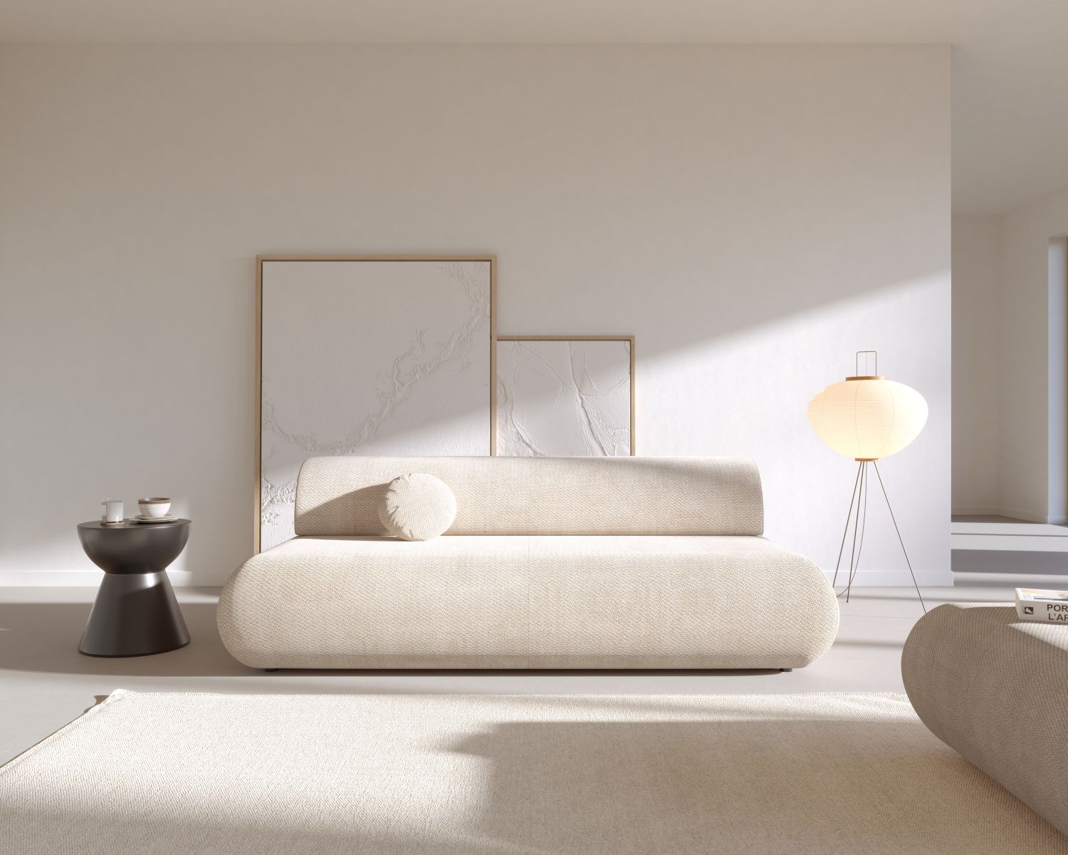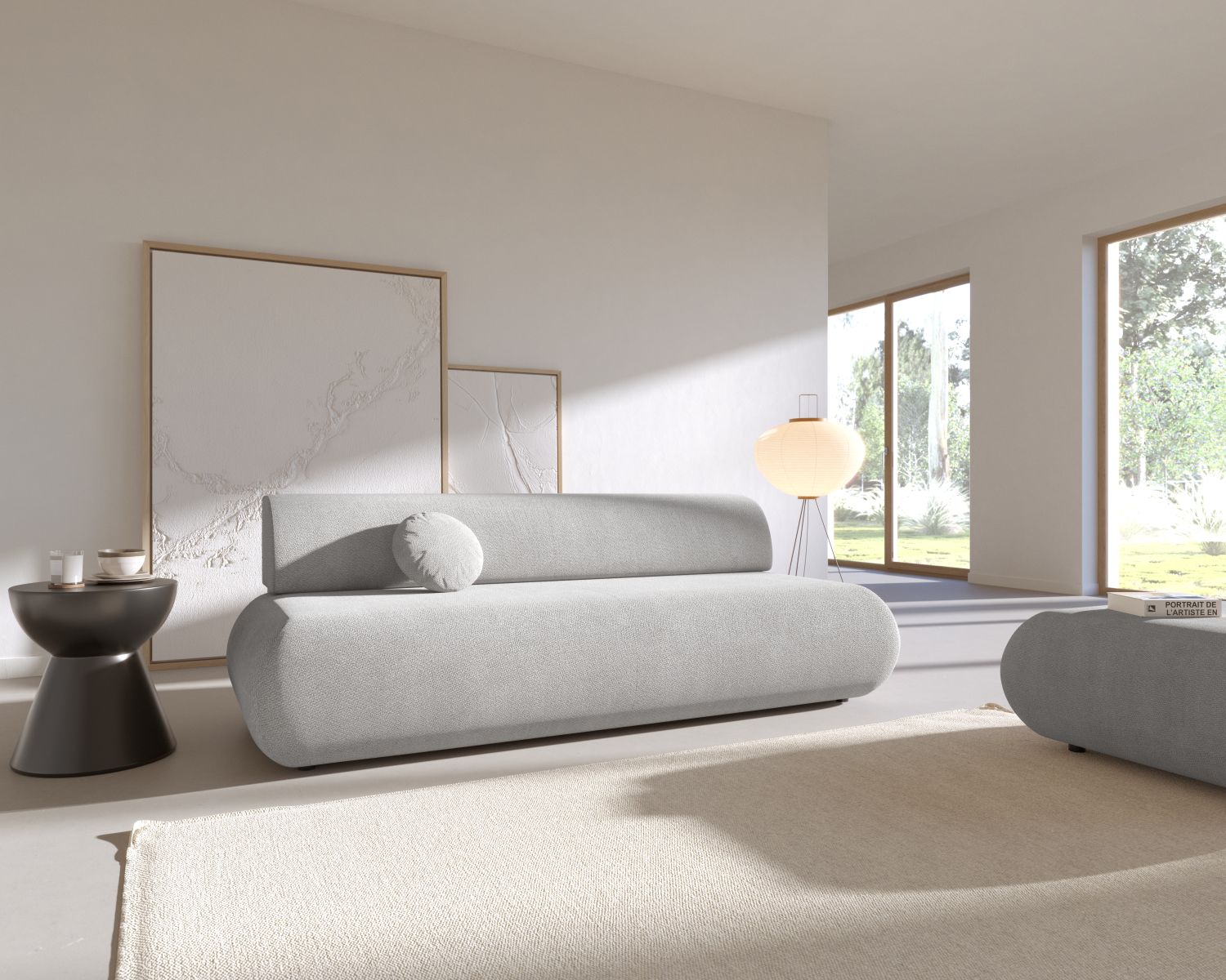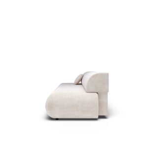 Szukasz designerskiej sofy, która przyciąga uwagę formą i gwarantuje wygodę na co dzień? Sofa BERRO to dwu–trzyosobowy model, który łączy oryginalny wygląd, funkcjonalność i komfort użytkowania. Jej charakterystyczna, obła bryła o miękkich liniach nadaje wnętrzu niepowtarzalny, nowoczesny styl.Sofa BERRO została wyposażona w funkcję spania, dzięki której w prosty sposób można przekształcić ją w wygodne łóżko do codziennego lub okazjonalnego odpoczynku. Dodatkowo posiada pojemnik na pościel, który pozwala przechowywać koce i poduszki, utrzymując porządek w salonie.Siedzisko z wysokiej jakości pianek zapewnia miękkość i sprężystość, a profilowane oparcie gwarantuje wsparcie dla kręgosłupa i wygodną pozycję podczas relaksu. Sofa wyróżnia się zaokrąglonymi krawędziami i zintegrowanym, walcowatym oparciem, które nadają jej nowoczesny, minimalistyczny charakter. Całość uzupełnia okrągła poduszka dekoracyjna, dodająca całości oryginalnego akcentu i przytulności.Obicie wykonano z trwałej, odpornej na ścieranie tkaniny, która zachowuje swój wygląd przez lata i jest łatwa w pielęgnacji. Starannie wykończony tył pozwala ustawić sofę w dowolnym miejscu – również w centralnej części pomieszczenia. Trwały szkielet gwarantuje stabilność i długotrwałe użytkowanie.Sofa BERRO to połączenie nowoczesnej estetyki, funkcjonalności i komfortu – doskonała propozycja dla osób, które szukają mebla o wyjątkowej formie i niepowtarzalnym stylu.
