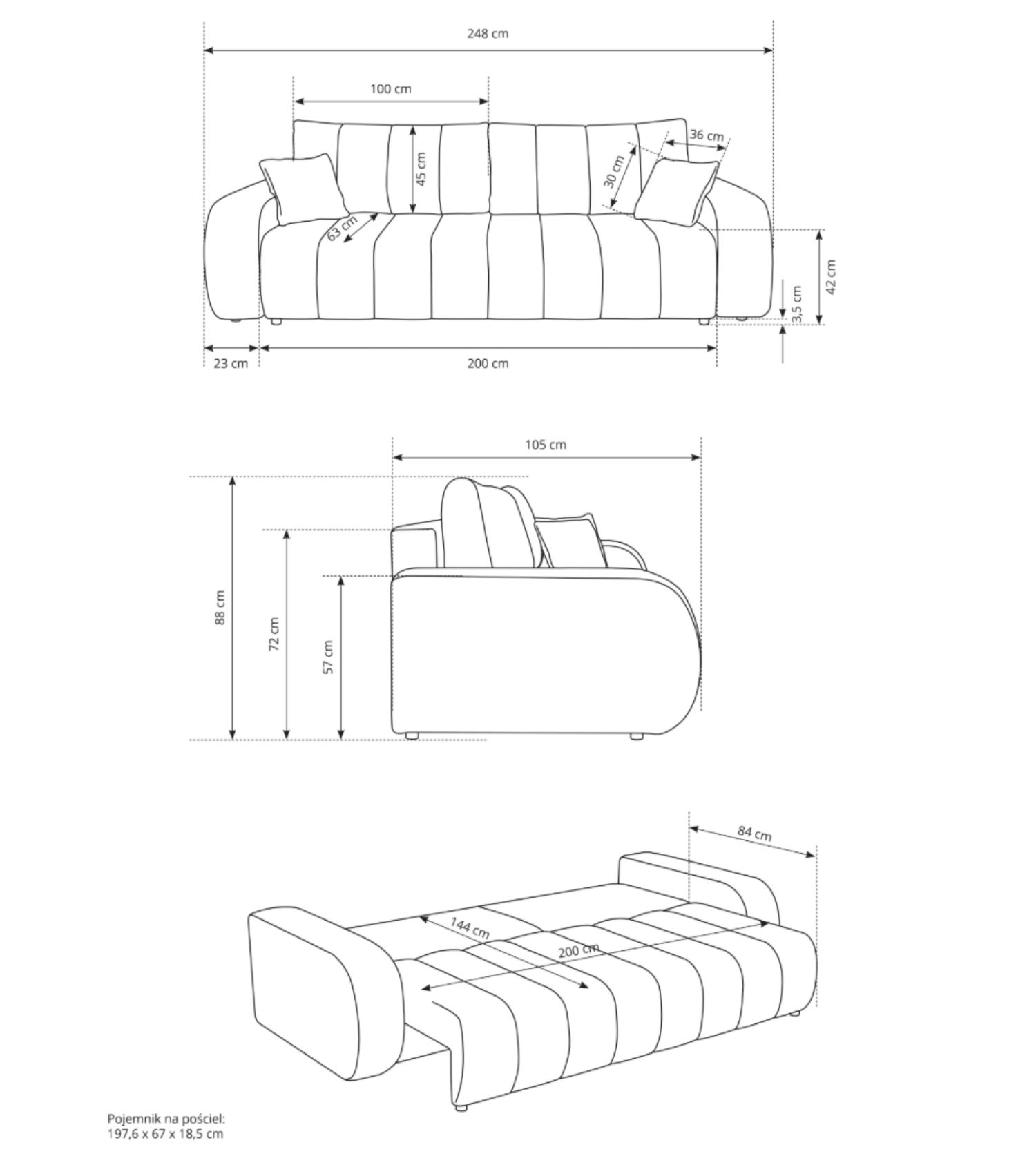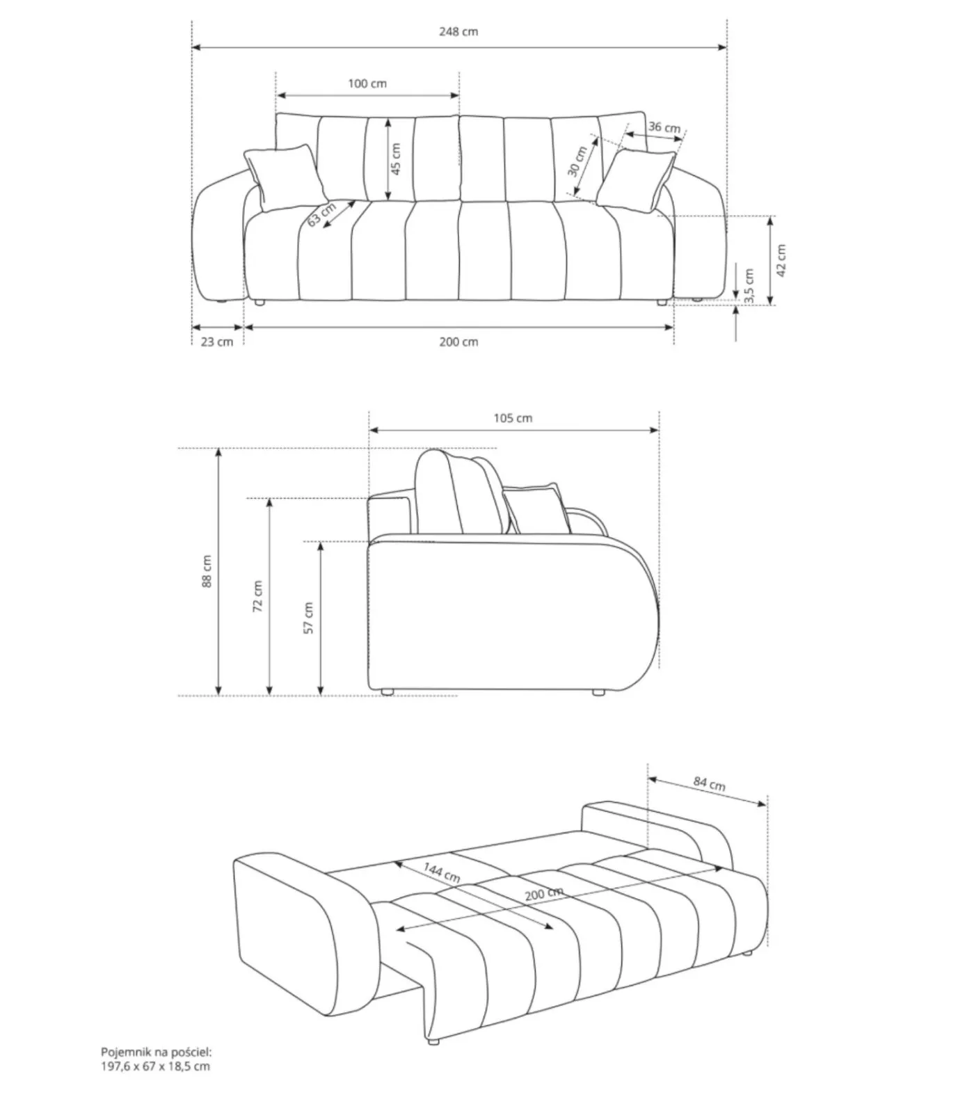 Sofa rozkładana trzy-czteroosobowa DALMA z funkcją spania i pojemnikiem na pościel