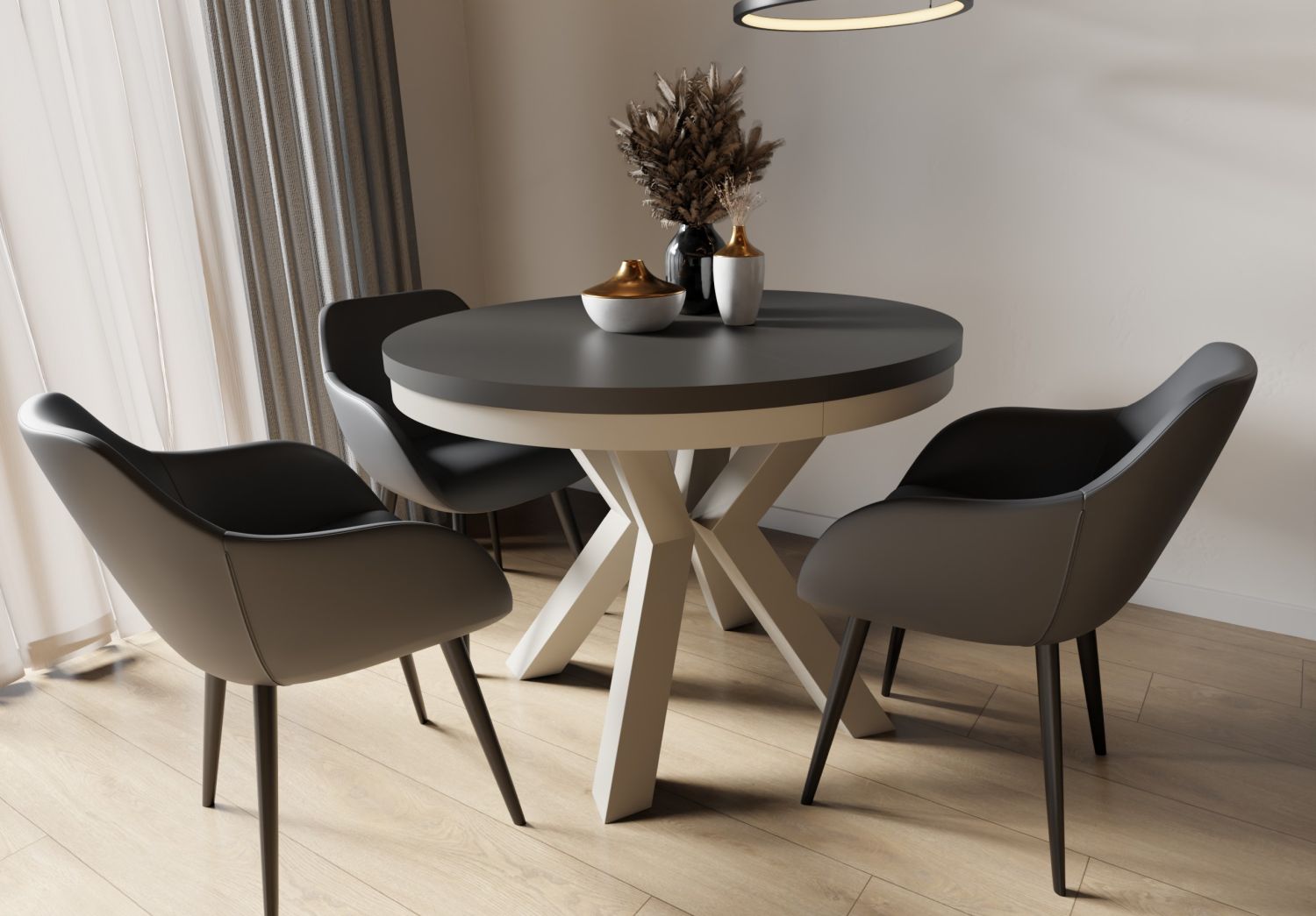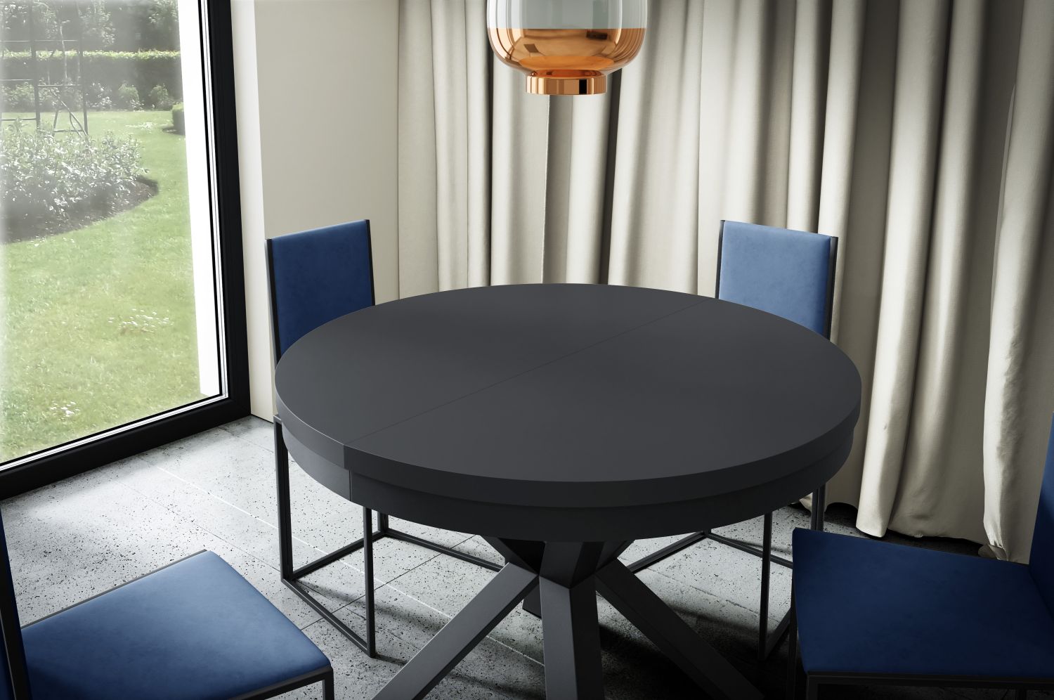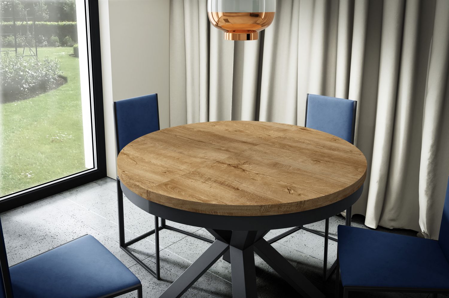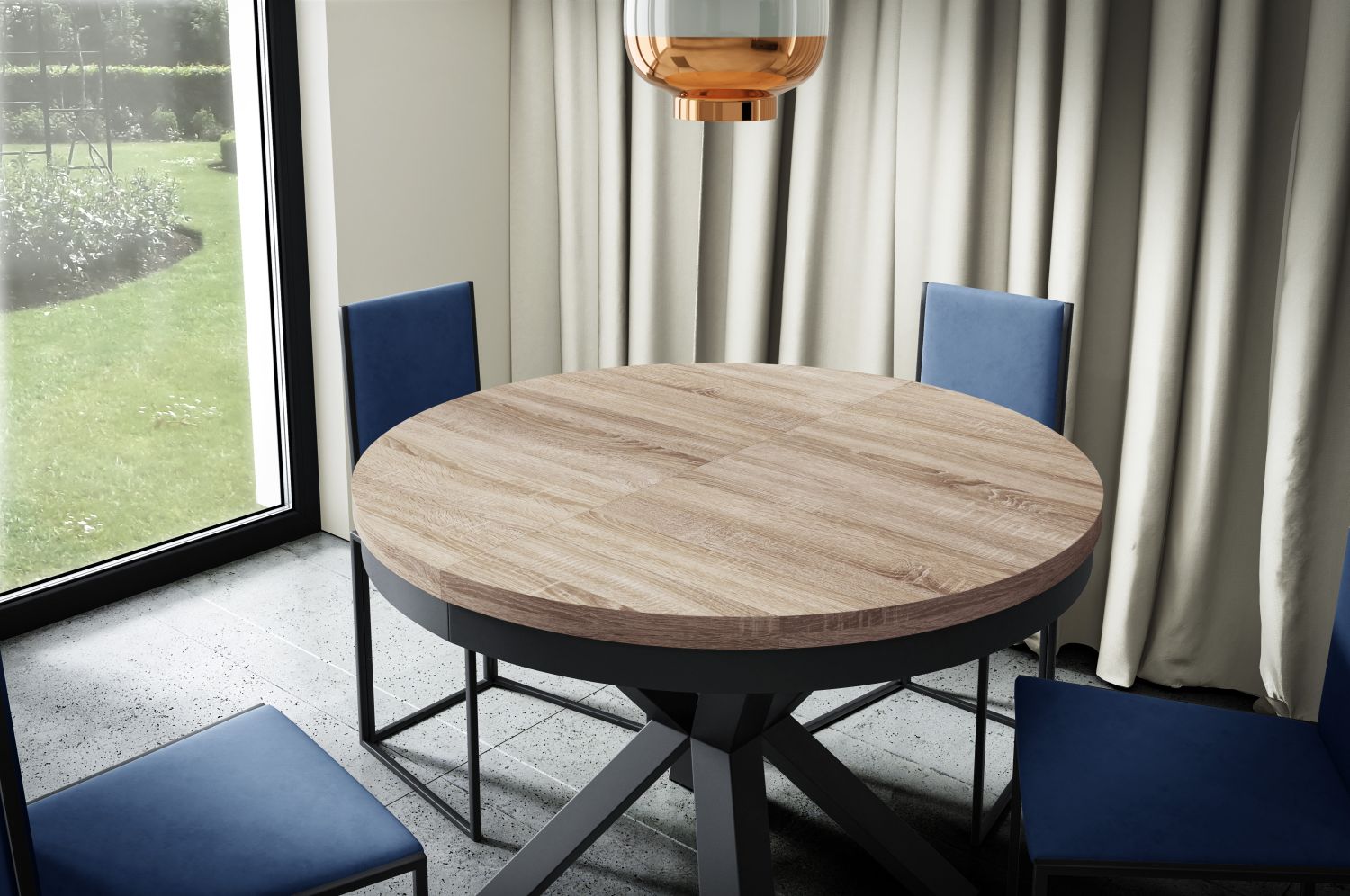Stół okrągły MARMO 120 rozkładany 120–196 cm loftowy